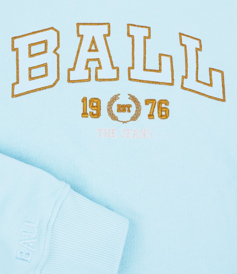 Den vildt populære L. Taylor sweatshirt fra Ball fås også i denne lyseblå model. Sweatshirten er med det broderede logo henover brystet inspireret af de velkendte, amerikanske college-trøjer. Den er oversized i pasform og har klassiske detaljer som rund hals og ribkanter.