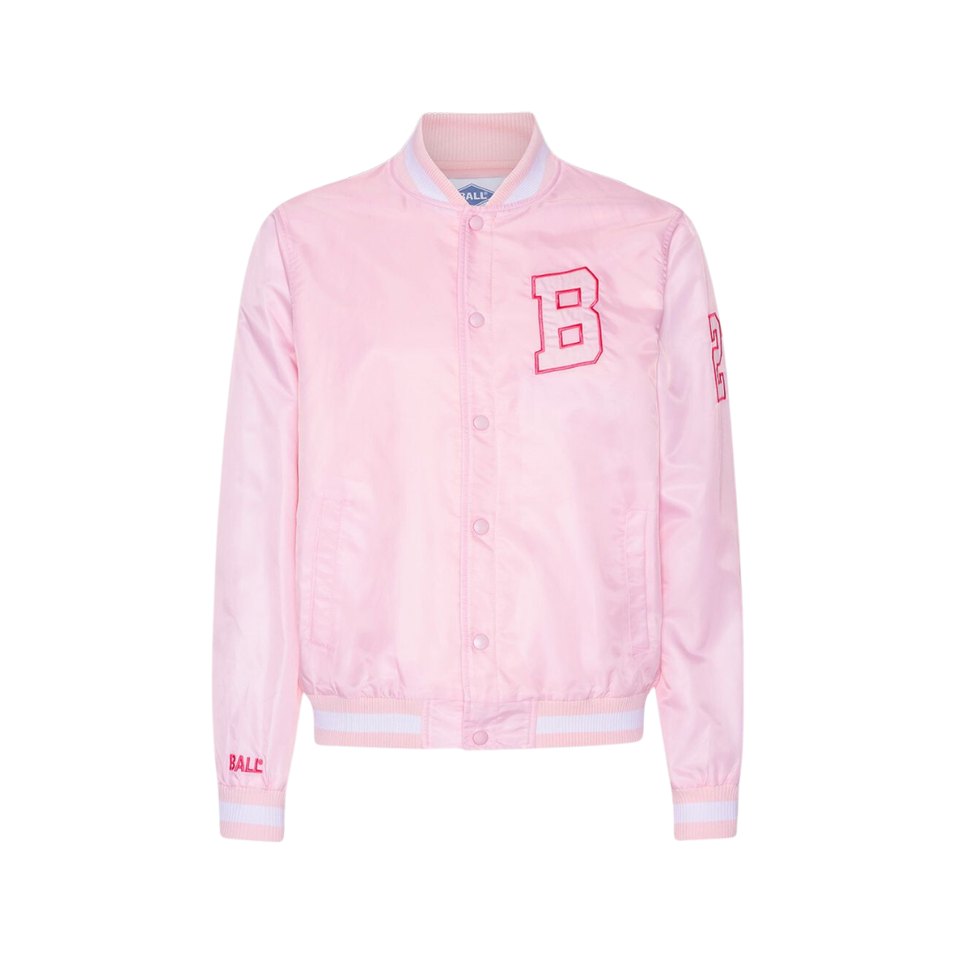 M. Richmond er en utrolig sej bomberjakke i en klassisk College stil. Modellen er oversized med lange ærmer og knaplukning. Jakken er fremstillet i en blank, lyserød kvalitet, hvilket giver den en utrolig cool-ness og en feeling af Sandy fra Grease. Indvendigt er den forret med bomuld, så den er blød at have på. Desuden har den seje rib-kanter samt store, broderede tryk både foran og bagtil.