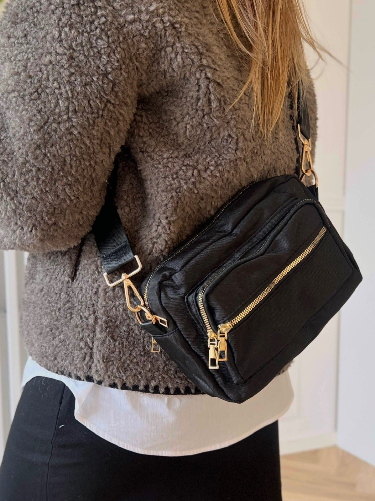 Denne smarte taske i sort fra Black Colour er den perfekte hverdagstaske, som nemt kan rumme det mest nødvendige. Foruden det store rum i midten har tasken lynlåslommer indvendigt og udvendigt. Derfor er der god mulighed for at holde orden og finde det, man skal bruge. Der medfølger en justerbar rem.