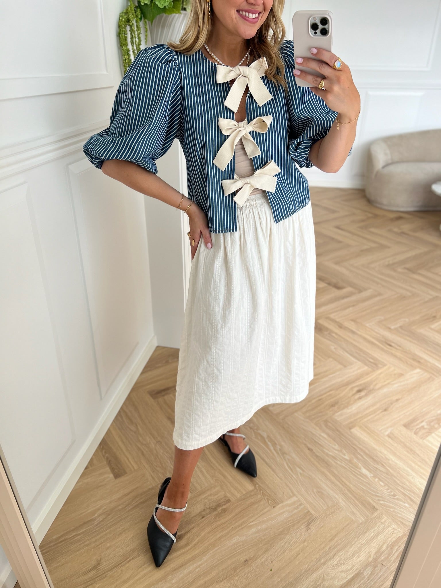 Billy Milkboy Bow Bluse Denim Blue fra Co'Couture