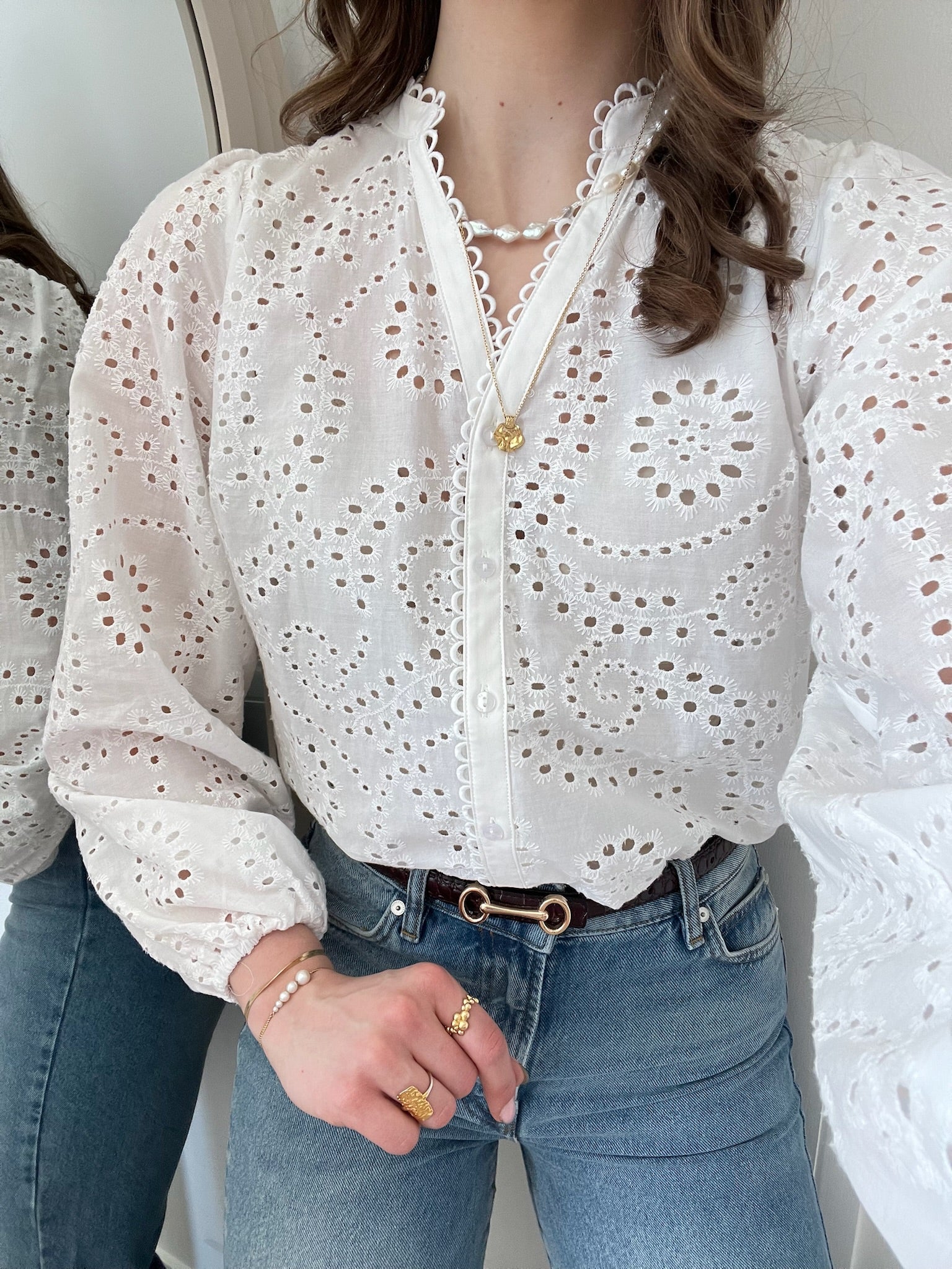 Co'Couture Giselle Anglaise V Skjorte White