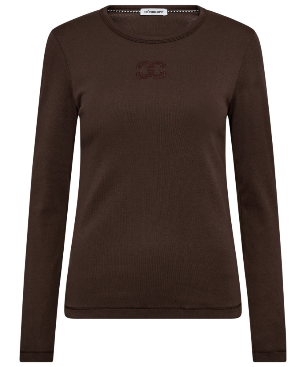 Co'Couture Granny Embroidery LS T-shirt Dark Brown