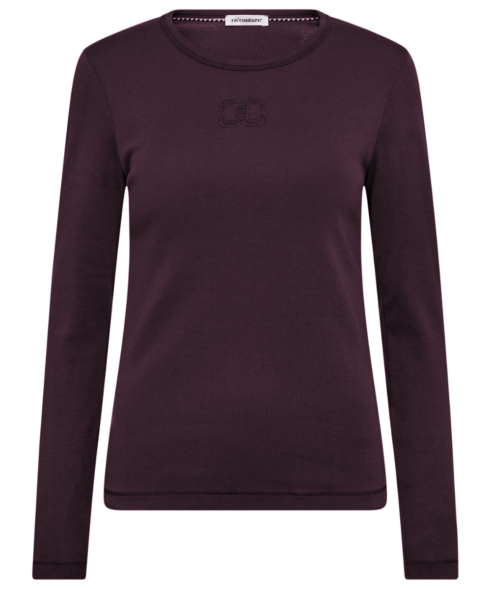 Co'Couture Granny Embroidery LS T-shirt Plum
