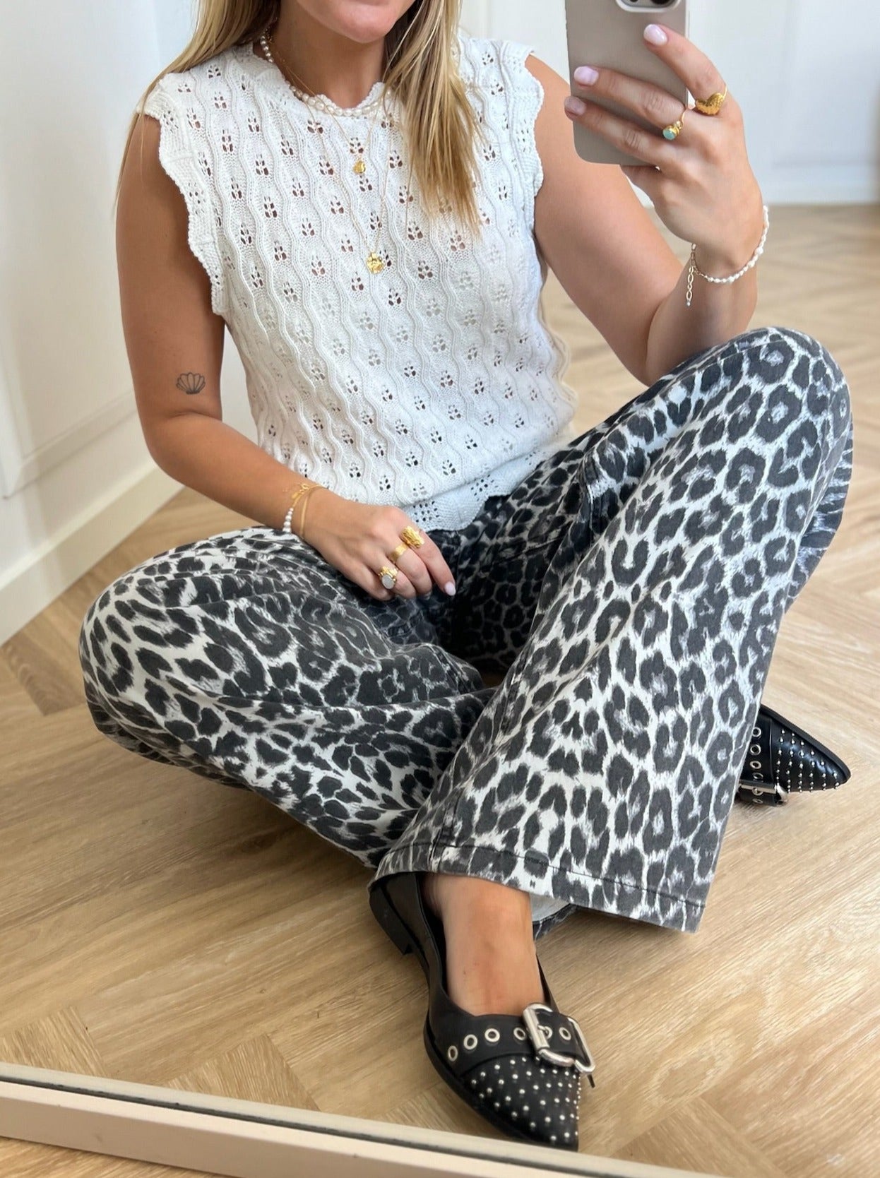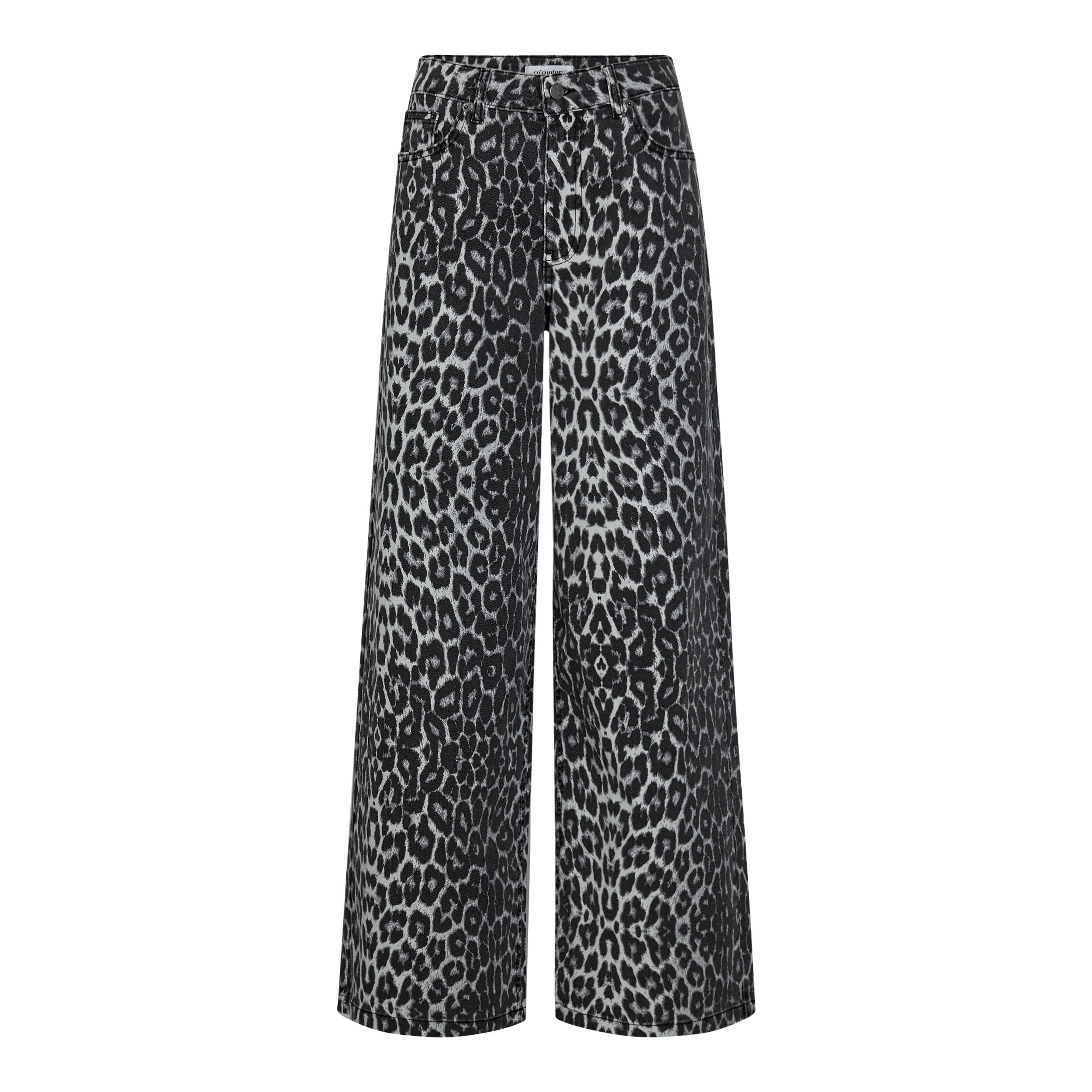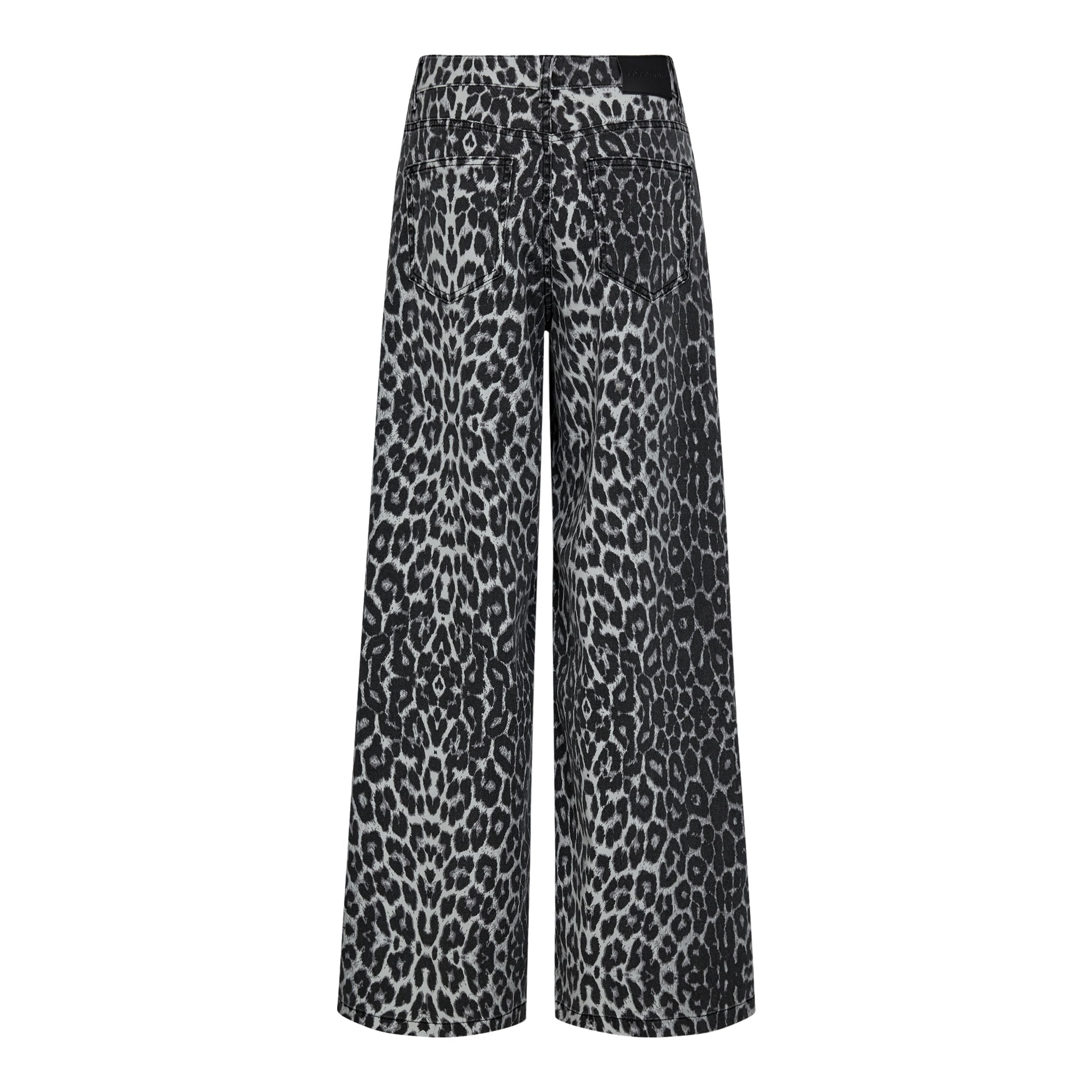 Super cool leopard bukser i farven dark grey. Bukserne har ekstra brede ben, lynlås- og knapplukning, samt lommer fortil og bagpå.