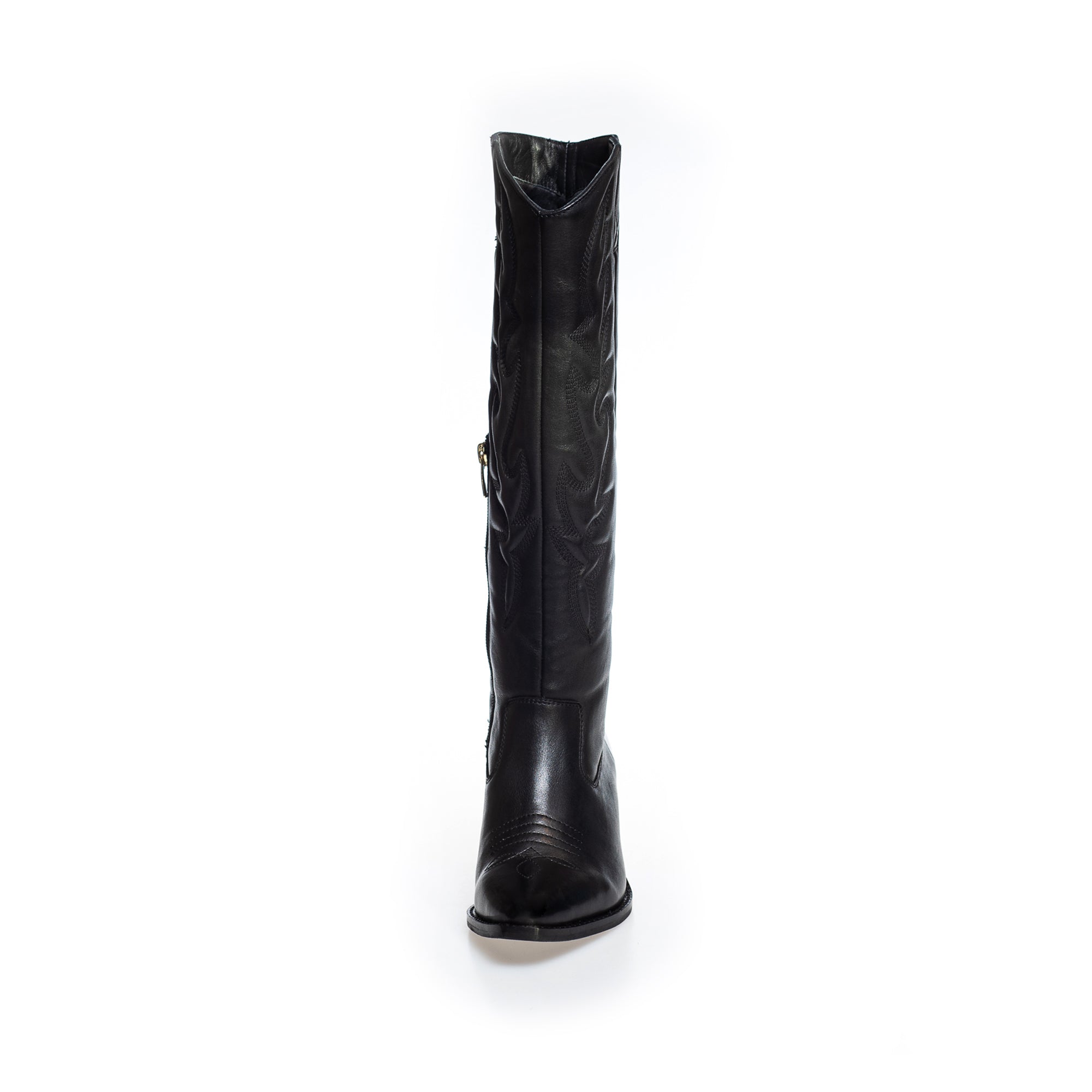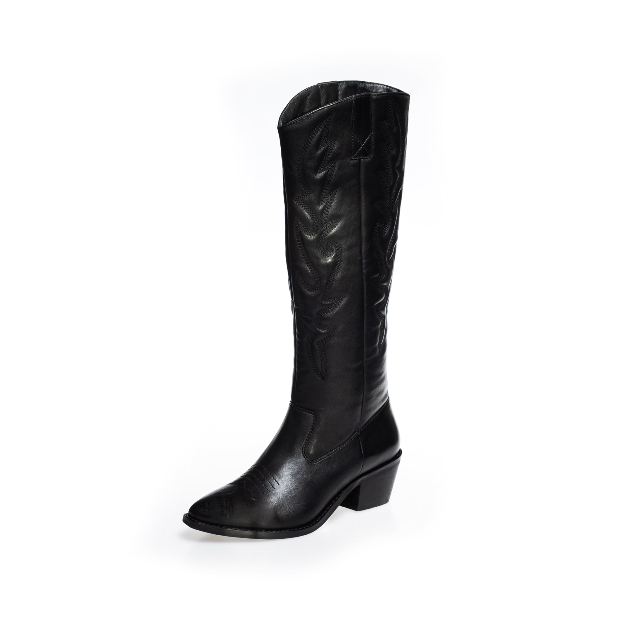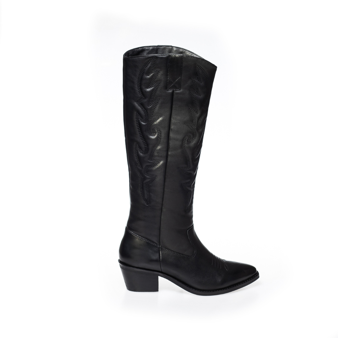 Super cool western boots i sort med spids snude og en bred hæl. Støvlen har broderet et flot mønster, og lukkes med en halv lynlås i siden.
