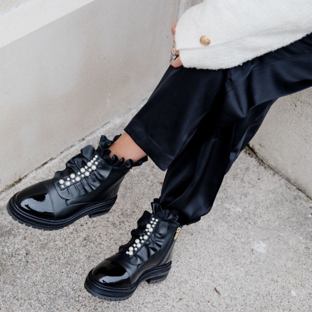 Pretty Pearls Leather Støvler Black fra Copenhagen Shoes