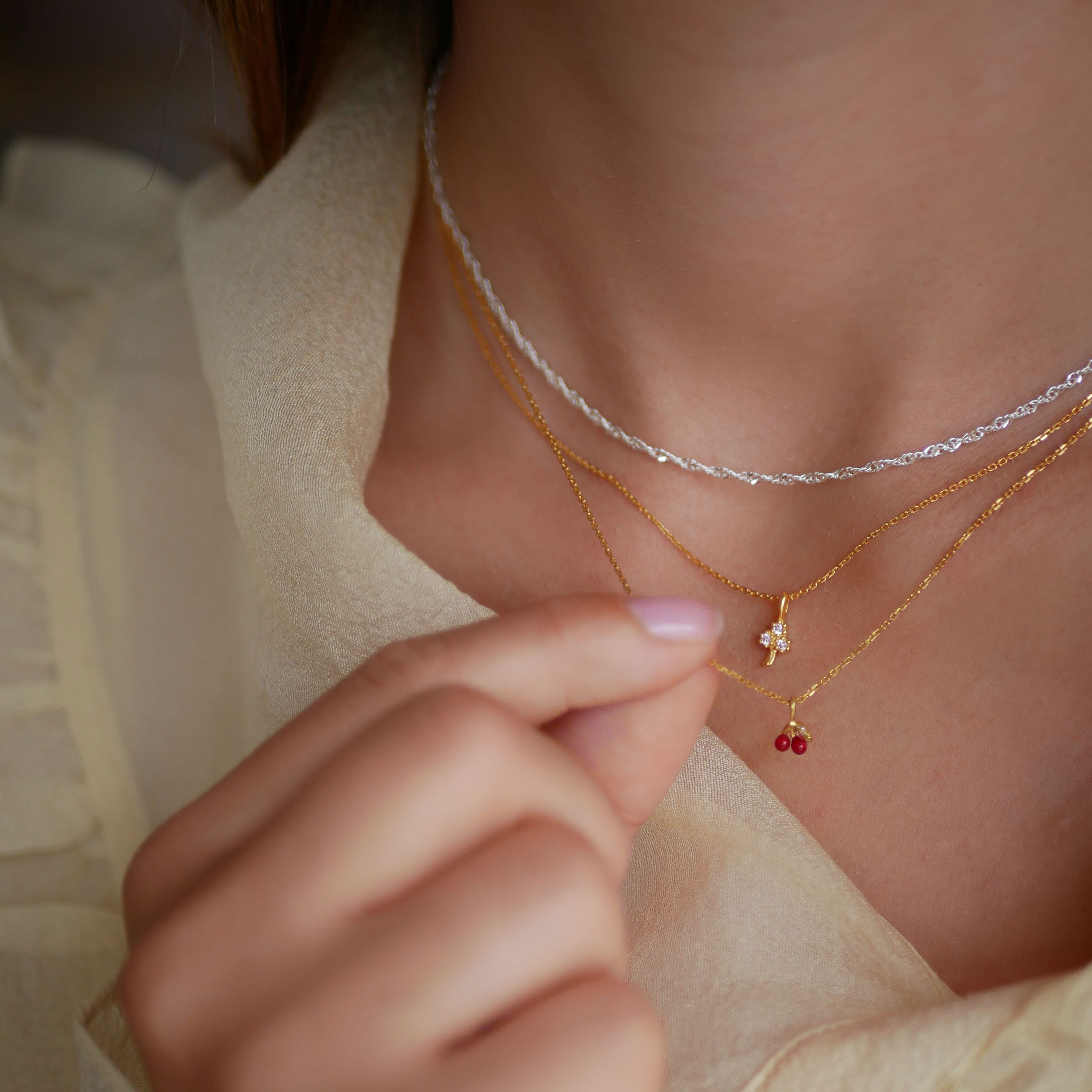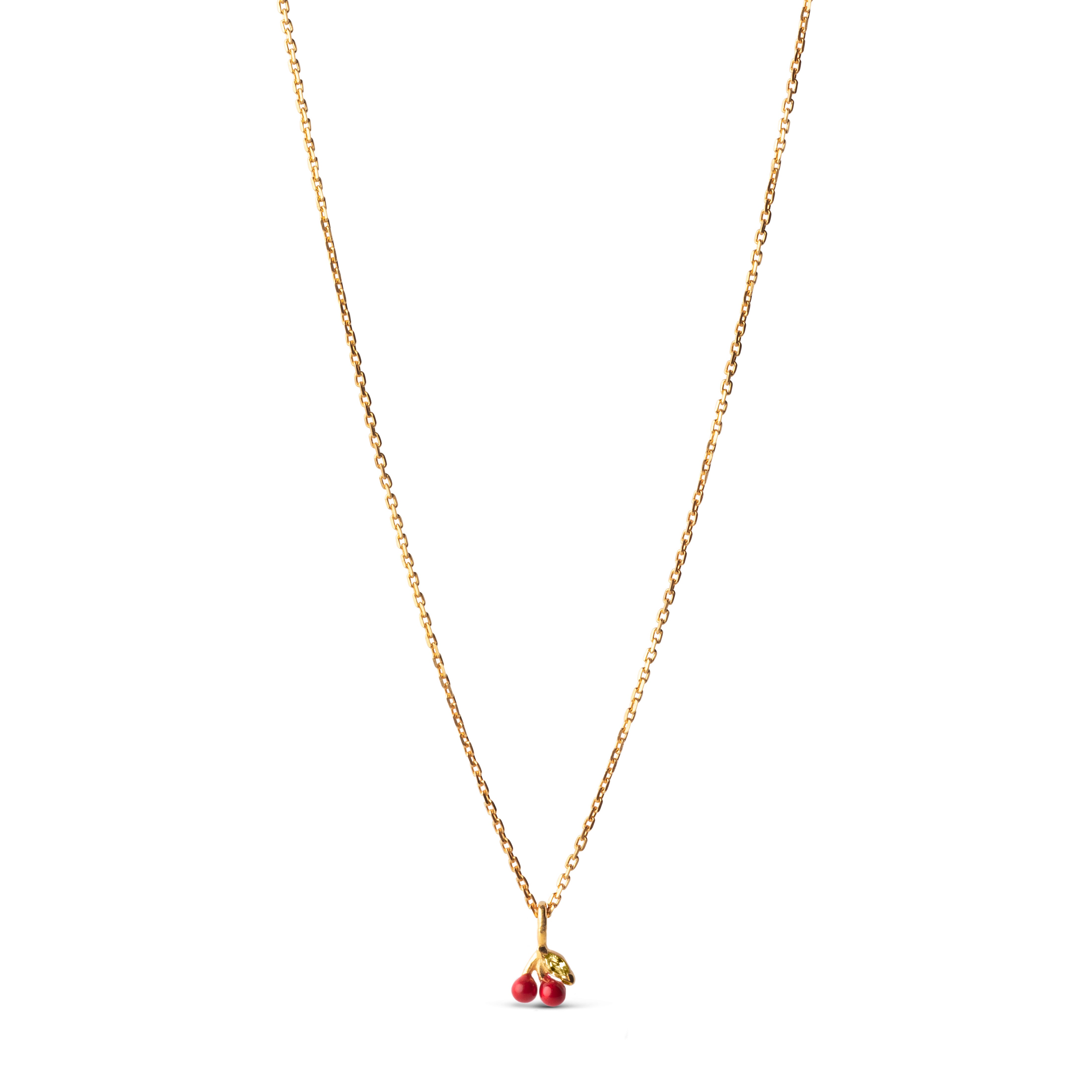 Sød og feminin halskæde med et enkelt udtryk. Smykket består af en tynd kæde med et lille rødt kirsebærvedhæng. Style den evt. med de andre Cherry styles fra Enamel for et feminint smykkelook - Se dem her.