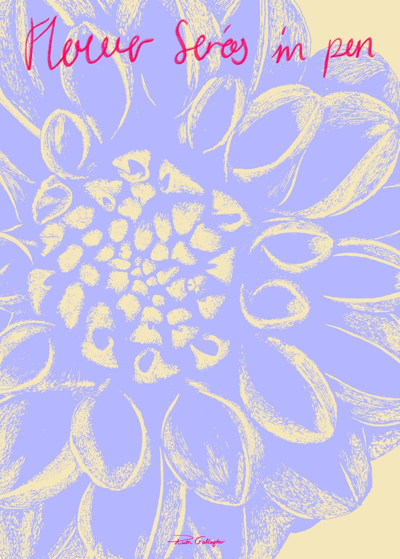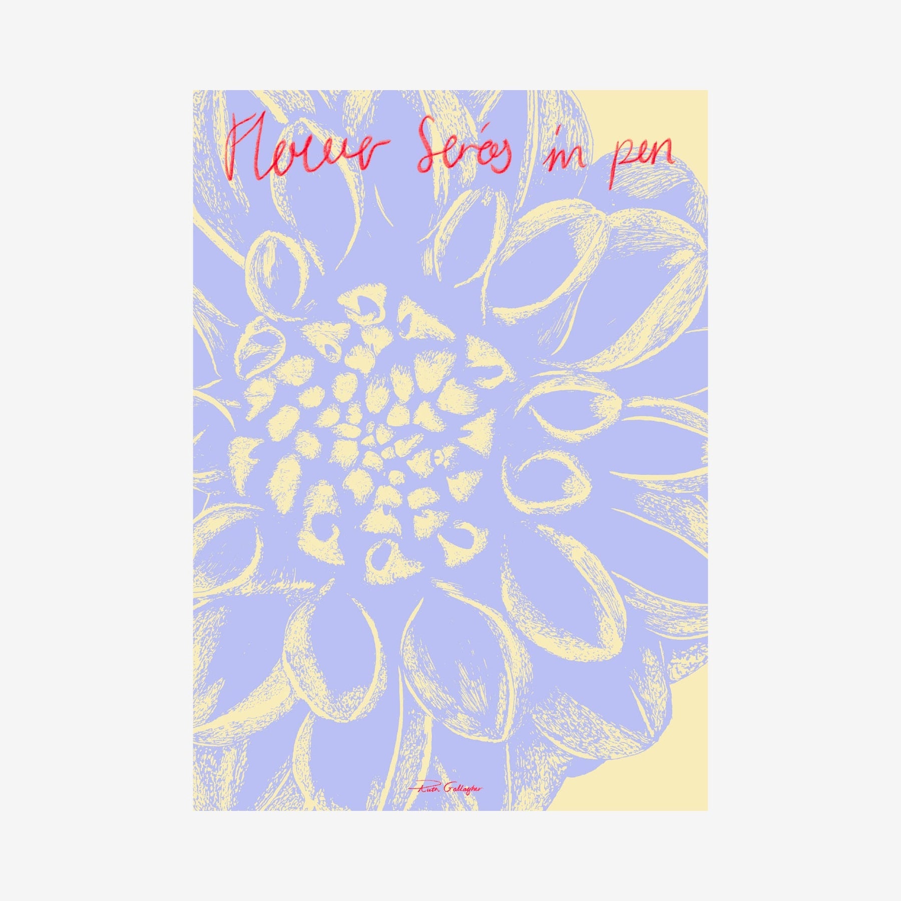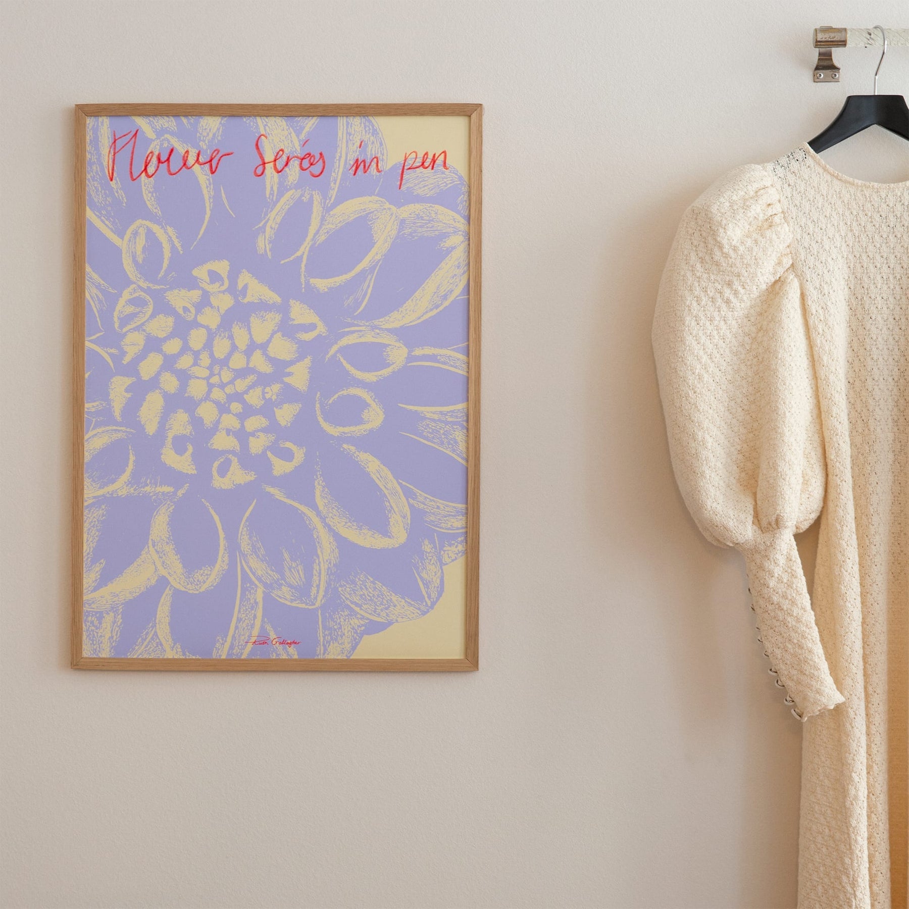Smuk plakat, der her et fantastisk farvespil med lilla, gul og rød. Plakaten har motiv af en stor blomst og er eksklusivt designet af Ruth Gallagher for If Walls Could Talk.