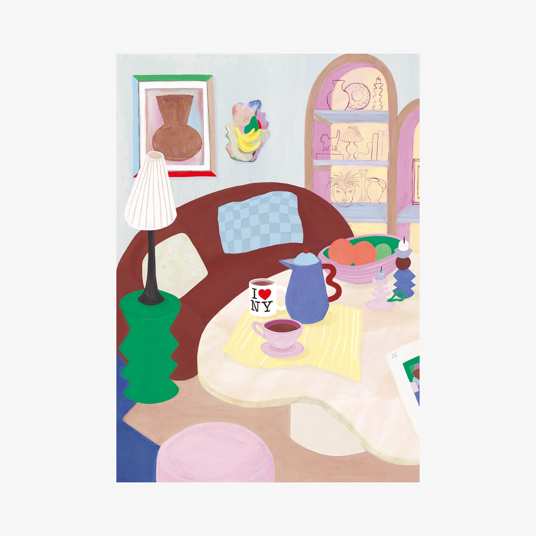 Sød plakat i et flot design lavet af Frauke Schyroki for If Walls Could Talk. Plakaten har motiv af en hyggelig stue med finurlige proportioner og flotte farvenuancer.