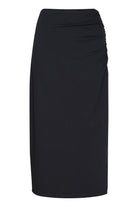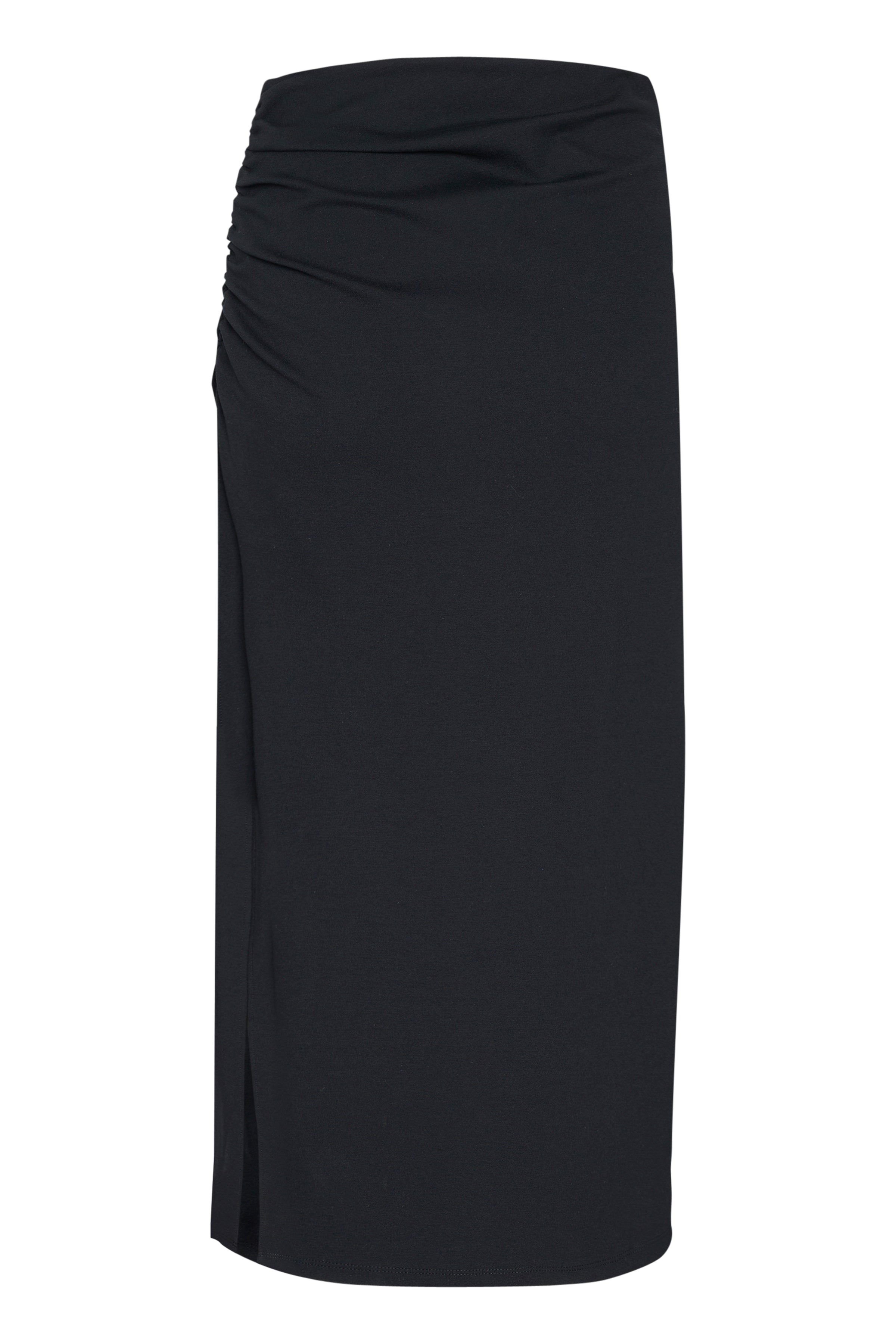 Ida er en fin nederdel i klassisk sort. Nederdelen er tætsiddende, har slids i venstre side, samt en rynket syning som giver et flot spil. Derudover lukkes den med en lynlås i siden. Style den med den matchende Ida top