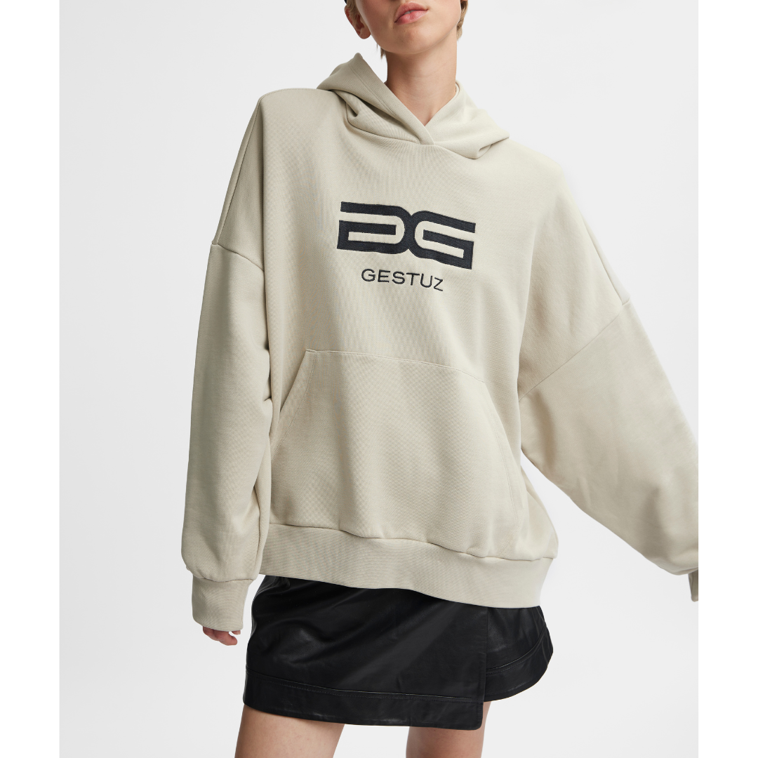 Super cool hoodie i en lækker, tyk sweat-kvalitet. Hoodien er oversized og bred i pasformen. Den har kængurulommer fortil samt et kontrastfyldt, broderet logo. Den findes også i sort her.