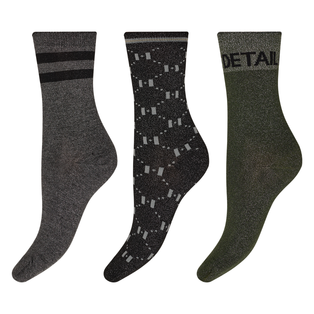 Strømper 3-Pak Sort/Grå/Grøn fra Hype The Detail Fashion