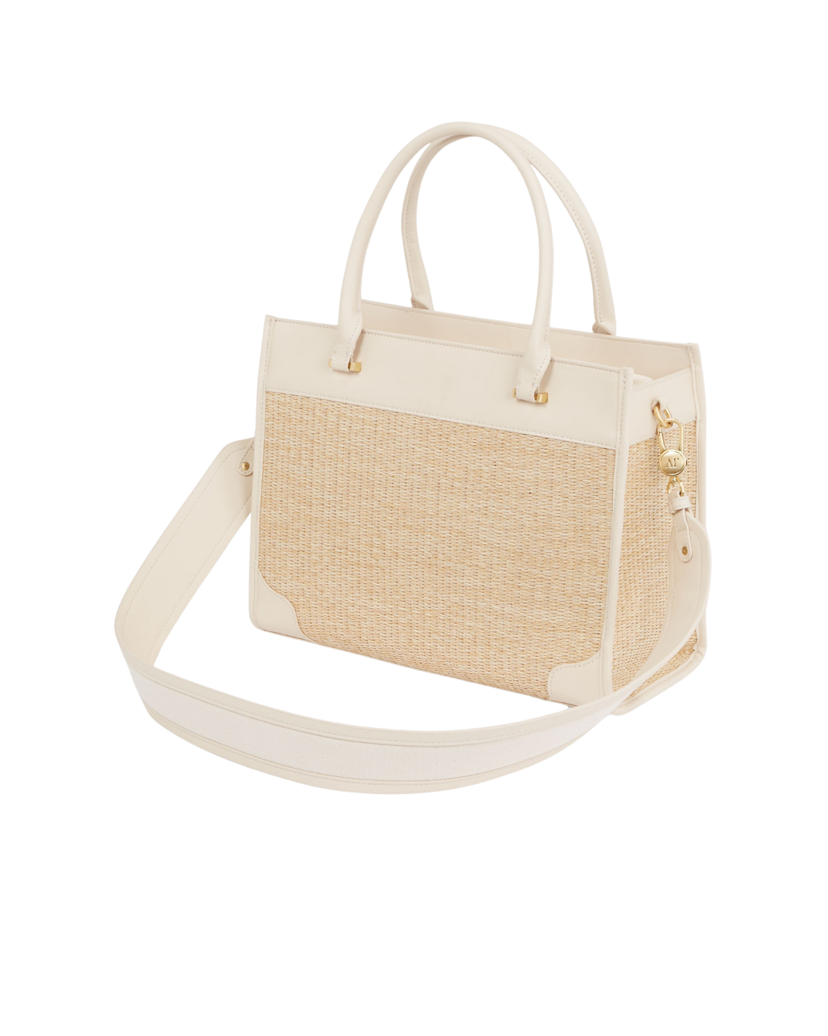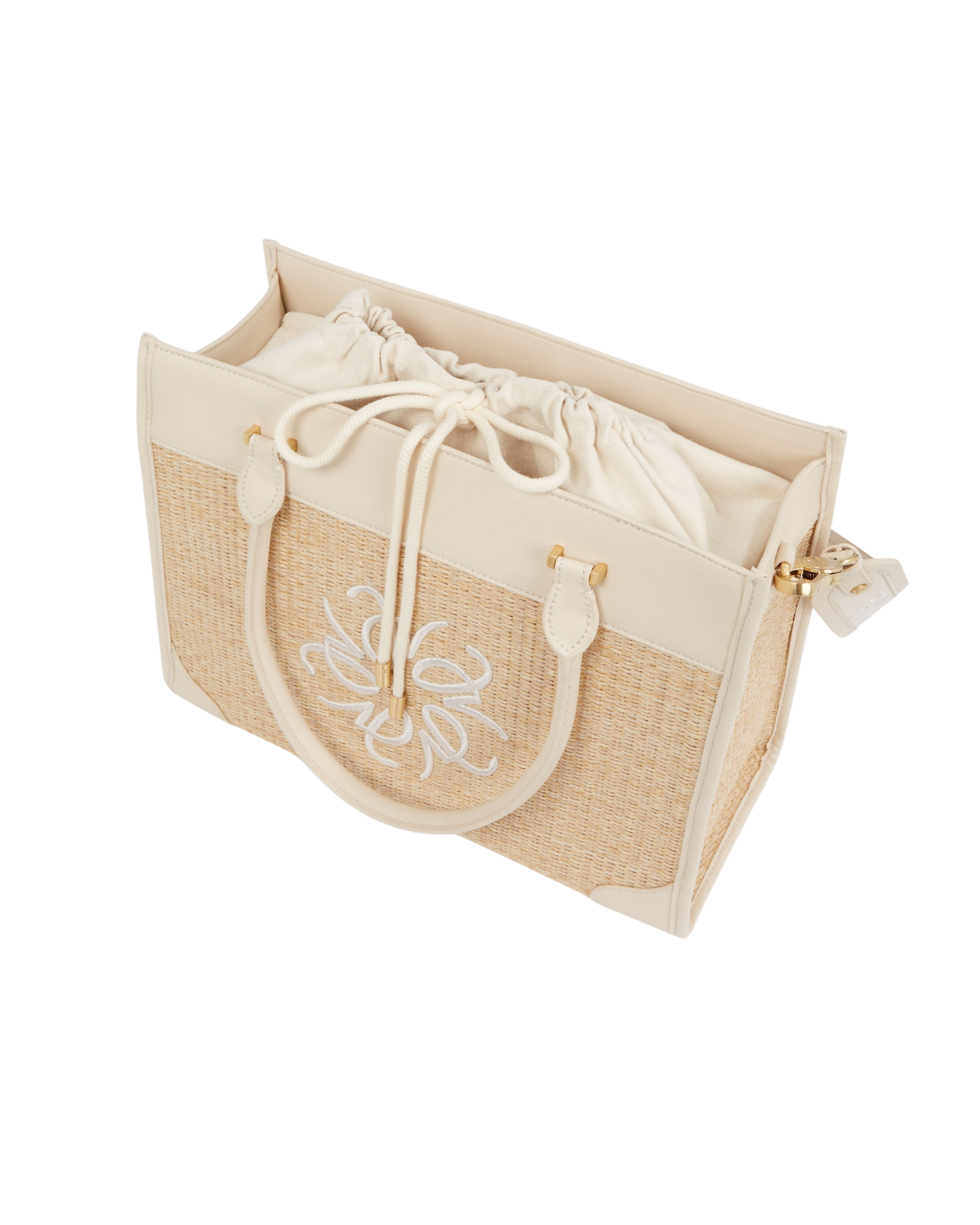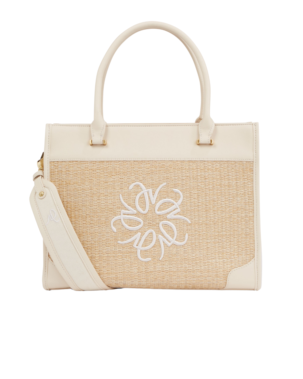 Lækker, stor taske fra Josh V i beige nuancer. Tasken har et stort rum med gode opdelinger og den lukkes med en snøre øverst. Derudover der der en smuk, borderet detalje foran. Den kan bæres i hånden eller over skulderen med den medfølgende rem. En helt perfekt taske til forår og sommer.