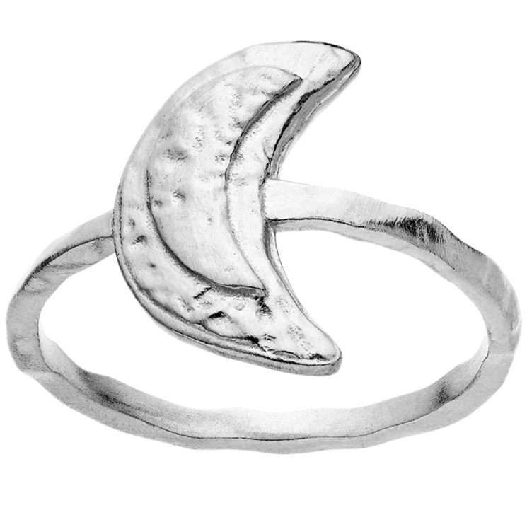 Smuk ring, der forstiller en måne. Den bankede overflade giver den et smukt, autentisk og legende udtryk.