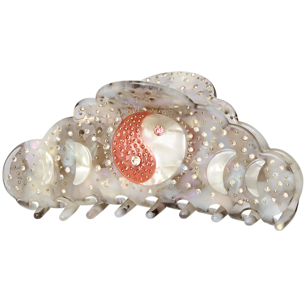 Månestens magiske hårklemme, Jada, er dekoreret med et balancerende yin og yang-motiv samt fire måner, der repræsenterer de fire månefaser på nattehimlen.