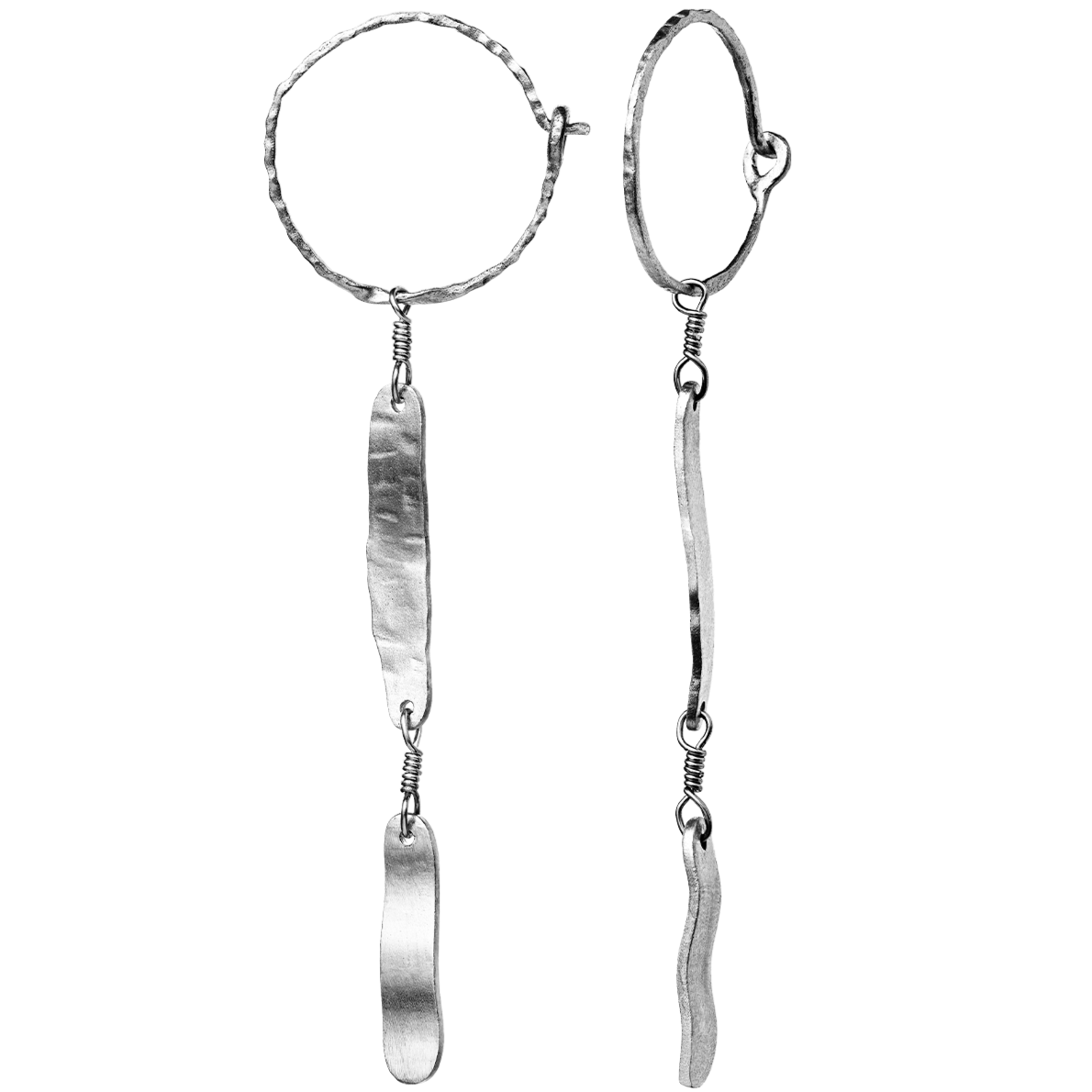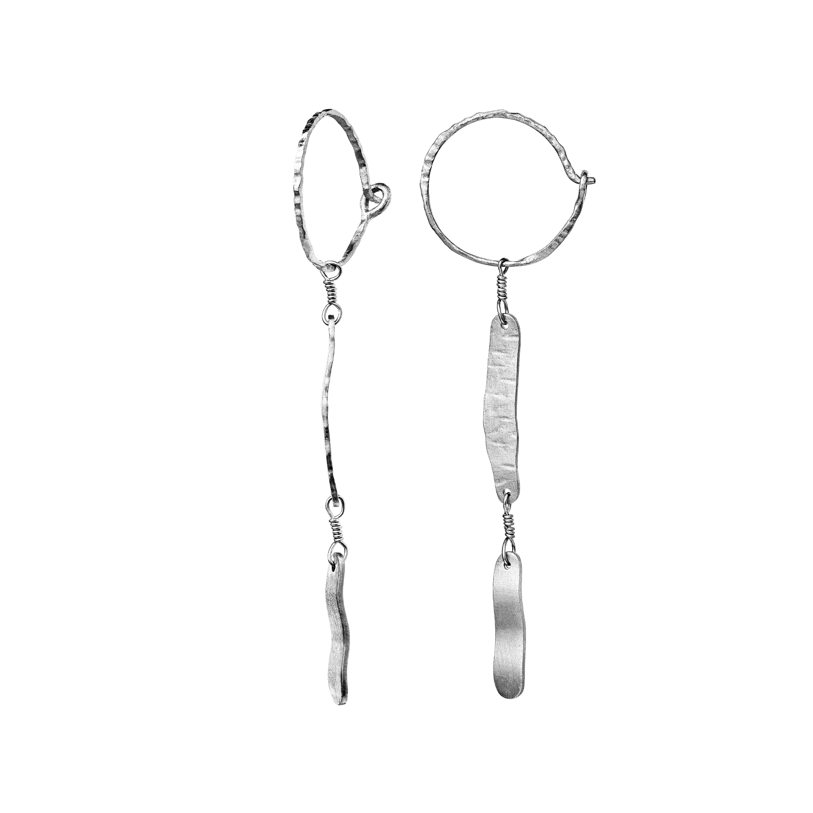Lila øreringene har et enkelt og lækkert udtryk. Øreringene har en banket overflade og det todelte vedhæng får det til at twiste fint fra øret. De findes også i forgyldt 925 sterling sølv, dem finder du her.