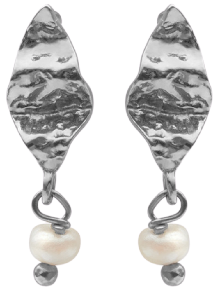 Lucca er et par super søde ørestikker med en banket, bølget overflade i 925 sterling sølv og vedhæng af små hvide ferskvandsperler.