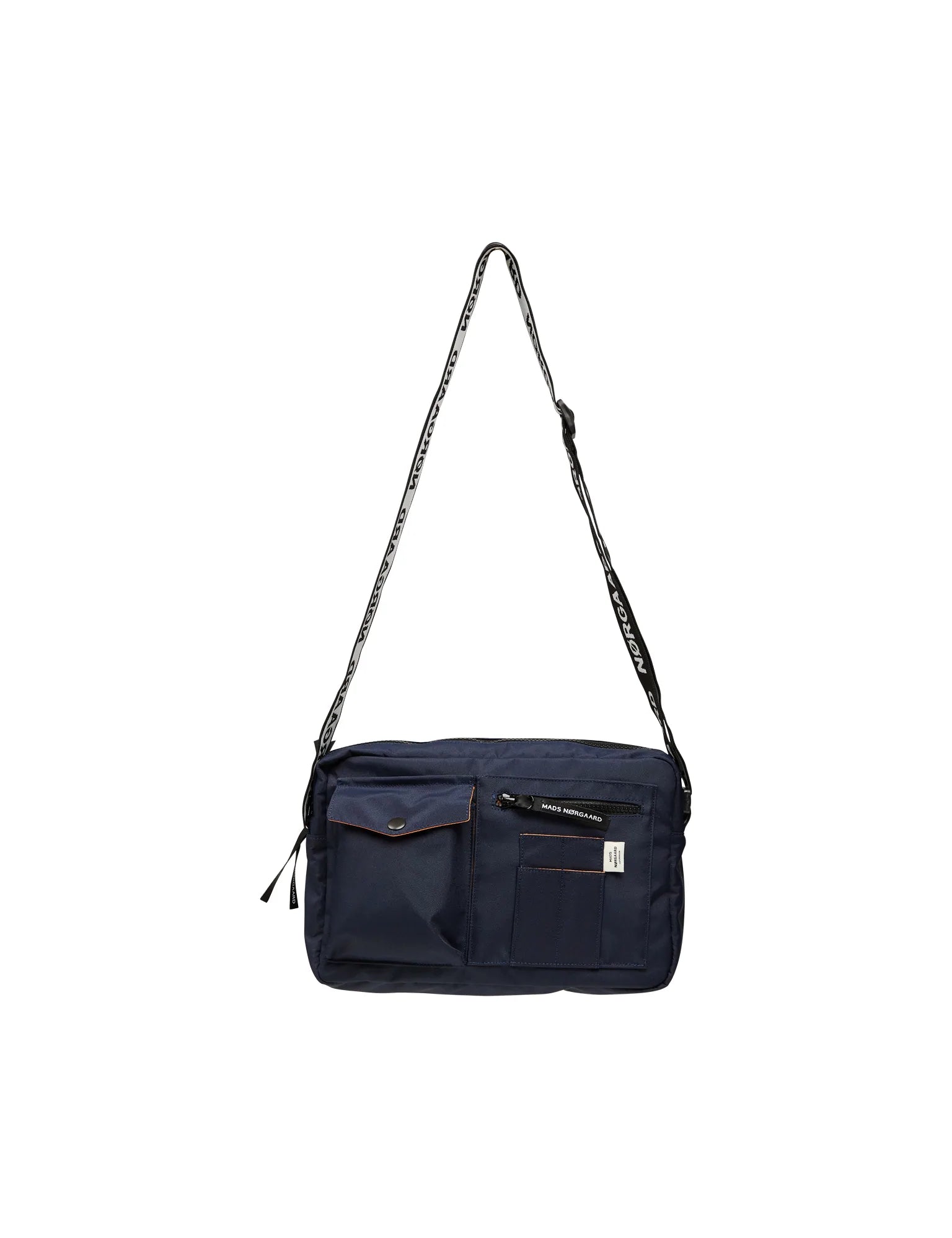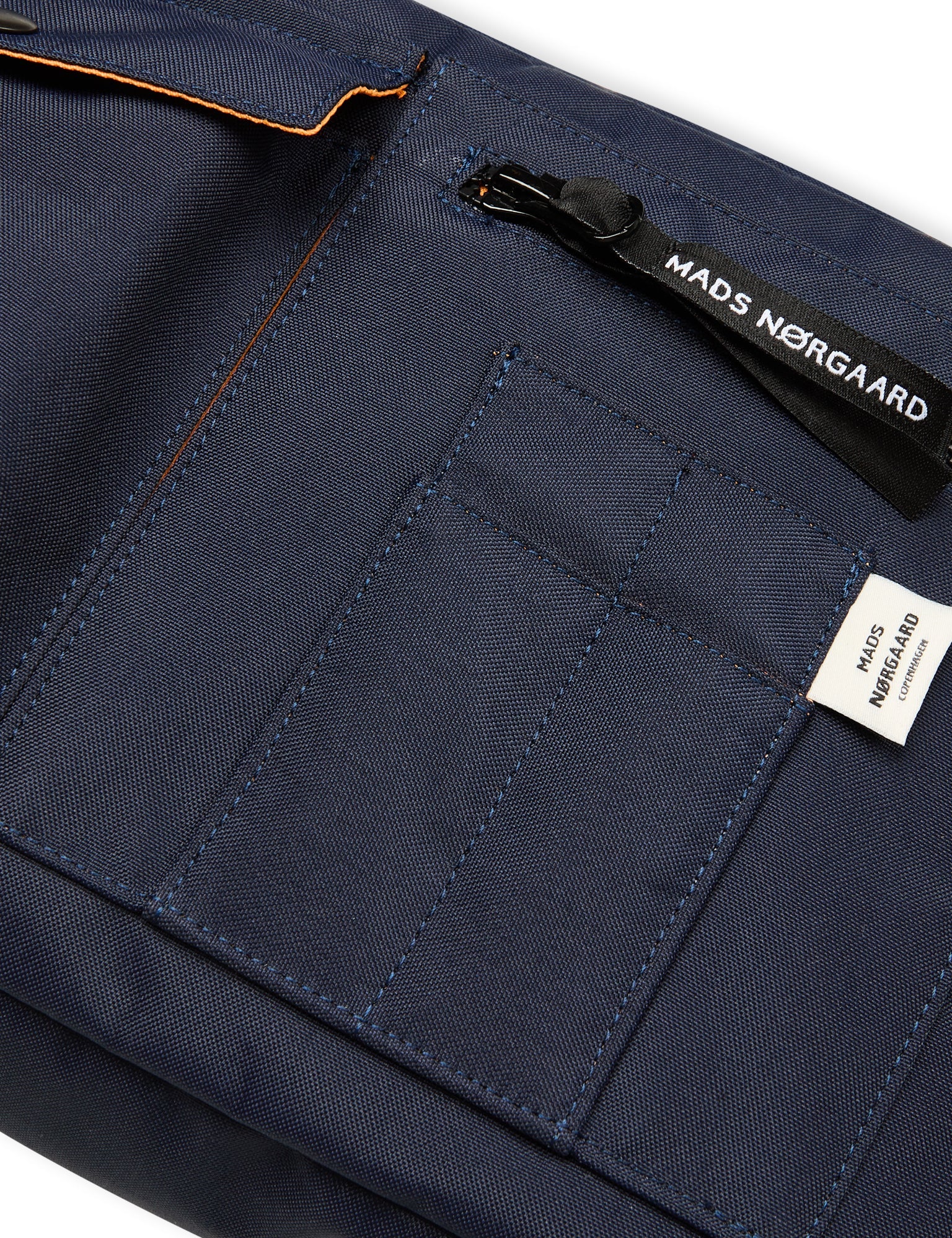 Den populære Bel One Cappa skuldertaske fra Mads Nørgaard er nu landet i en lækker mørkeblå. Tasken er rummelig og er derfor perfekt til at indeholde det mest nødvendige. Den har to store rum samt gode opdelinger med ekstra lommer, så det er let at holde orden. Den er desuden forret med en sej orange og remmen er sort og hvid med teksten "Nørgaard" som en cool detalje.