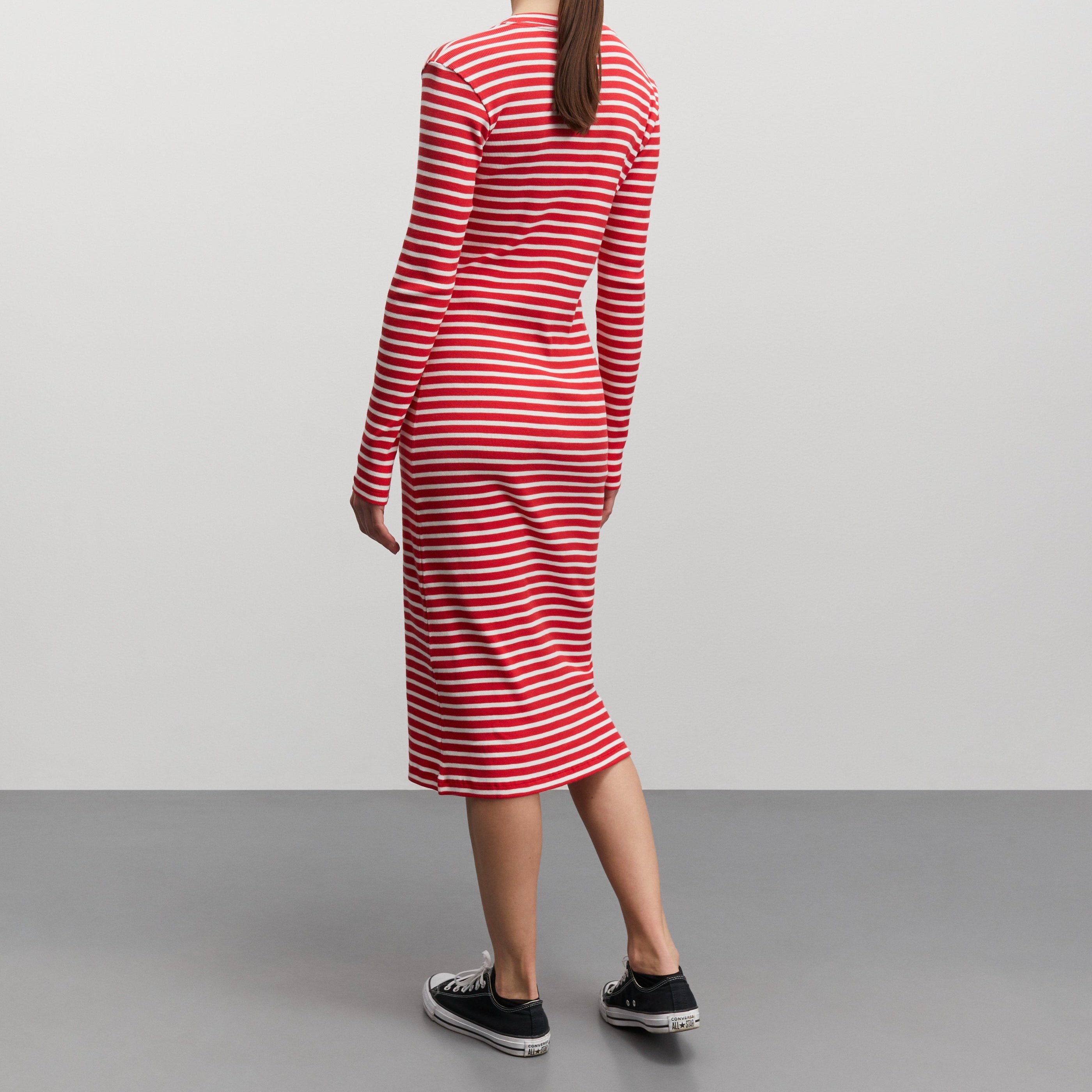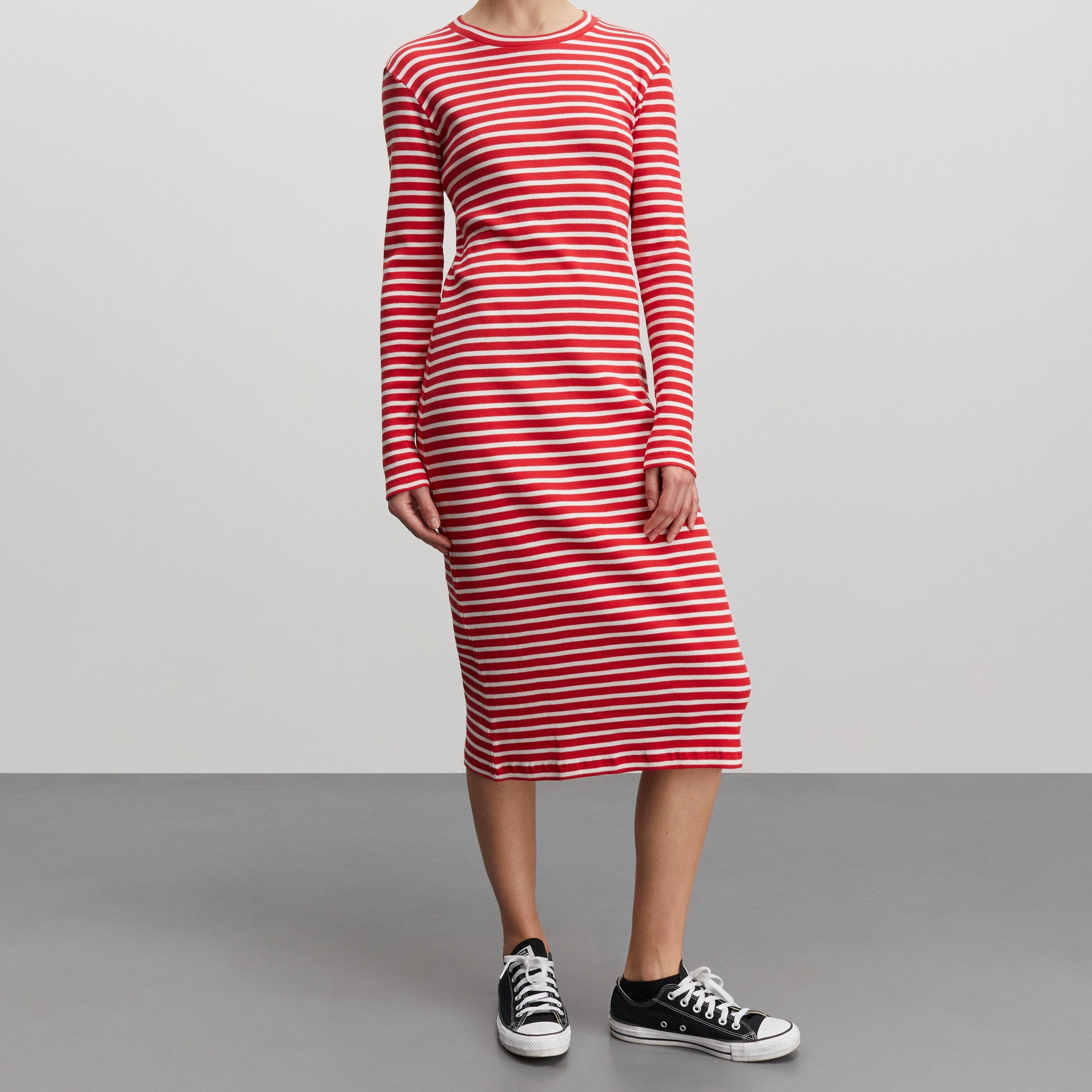 Cotton Stripe Duba Kjole High Risk Red/White Alyssum fra Mads Nørgaard
