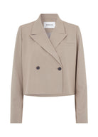 Anker er en lækker blazer med et flot snit. Denne udgave er en kort model, der smukt fremhæver taljen, når den er på. Den har i øvrigt reverskrave, snydelomme ved brystet samt lange ærmer. Du finder matchende Anker Wide Bukser her.