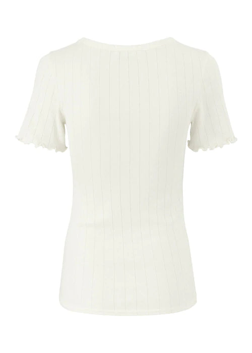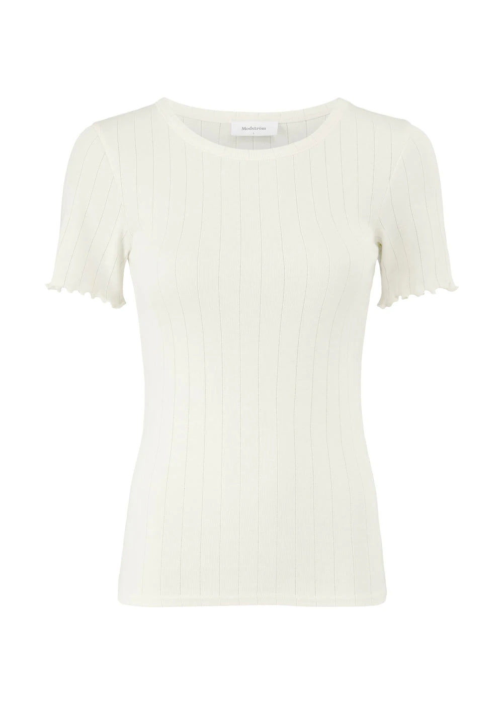 Issy er en fin og enkel t-shirt fra Modström. Den har en feminine detalje i form af hulmønster og en lille blæsekant ved ærmerne. Helt perfekt til basis garderoben.
