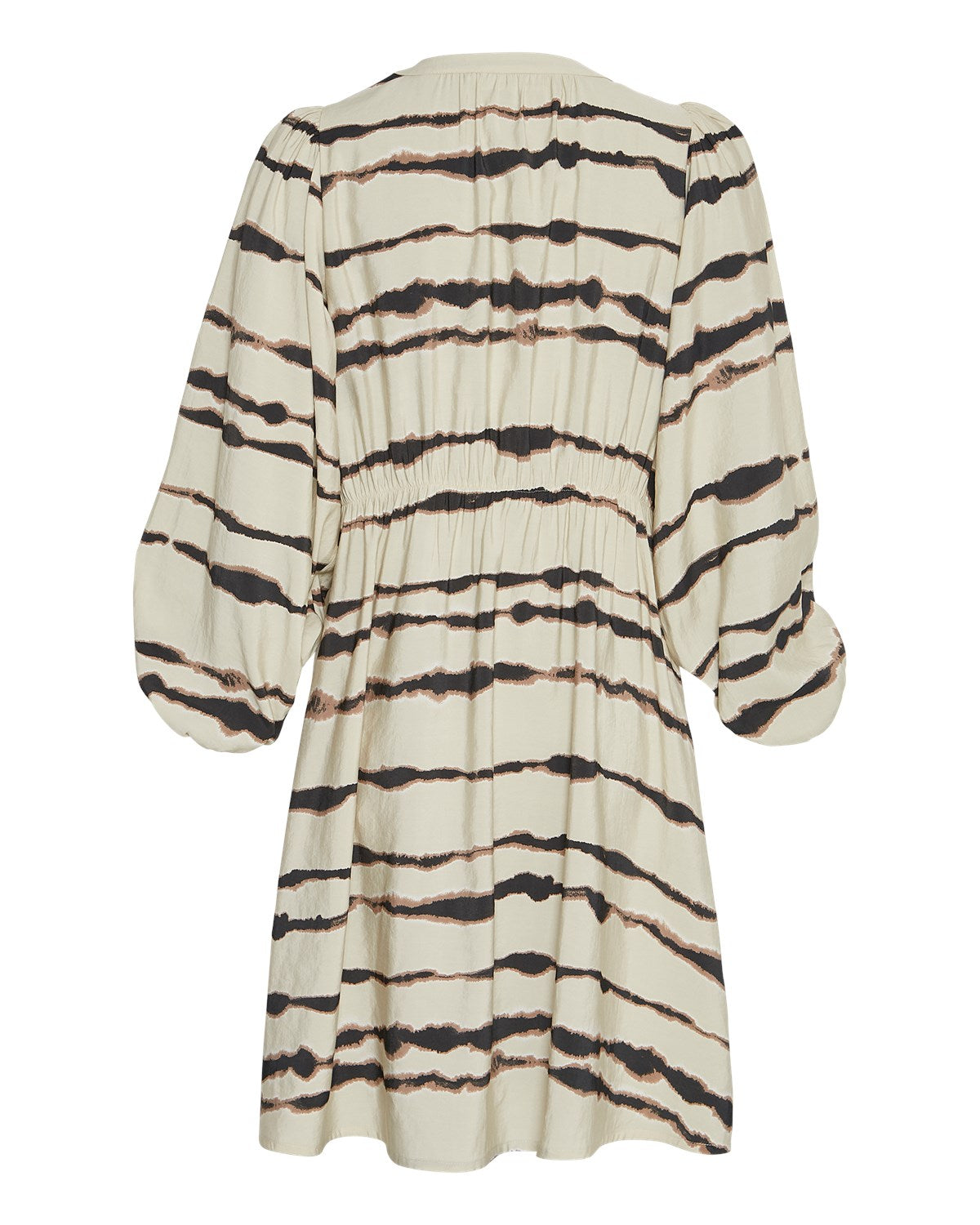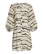Florella er en skøn skjortekjole fra fra Moss Copenhagen i jordnære farver. Kjolen har en skøn pasform med elastik bagpå ved taljen og a-facon fra livet og ned. Den er gennemknappet med skjulte knapper og har desuden trekvartlange ballonærmer, der afsluttes med elastik nederst. Style den med strømpebukser og støvler for et lækkert hverdagslook.