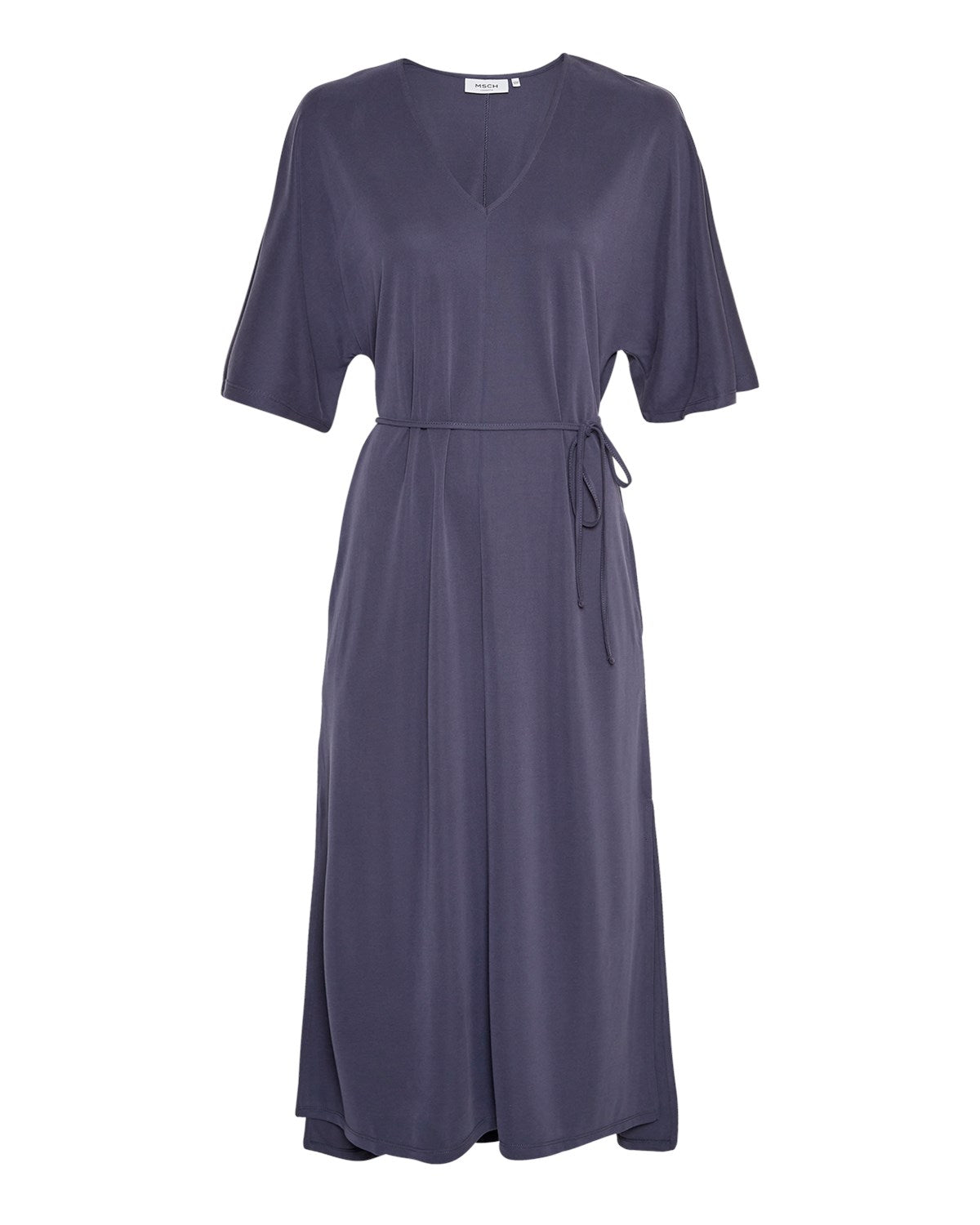Flot kjole i den blødeste kvalitet! Kjolen er med sin løse pasform både stilfuld og afslappet på én og samme tid. Den har dyb v-hals, længere T-shirt ærmer og bindebånd i taljen. Derudover har den både lommer og slidser i siden.