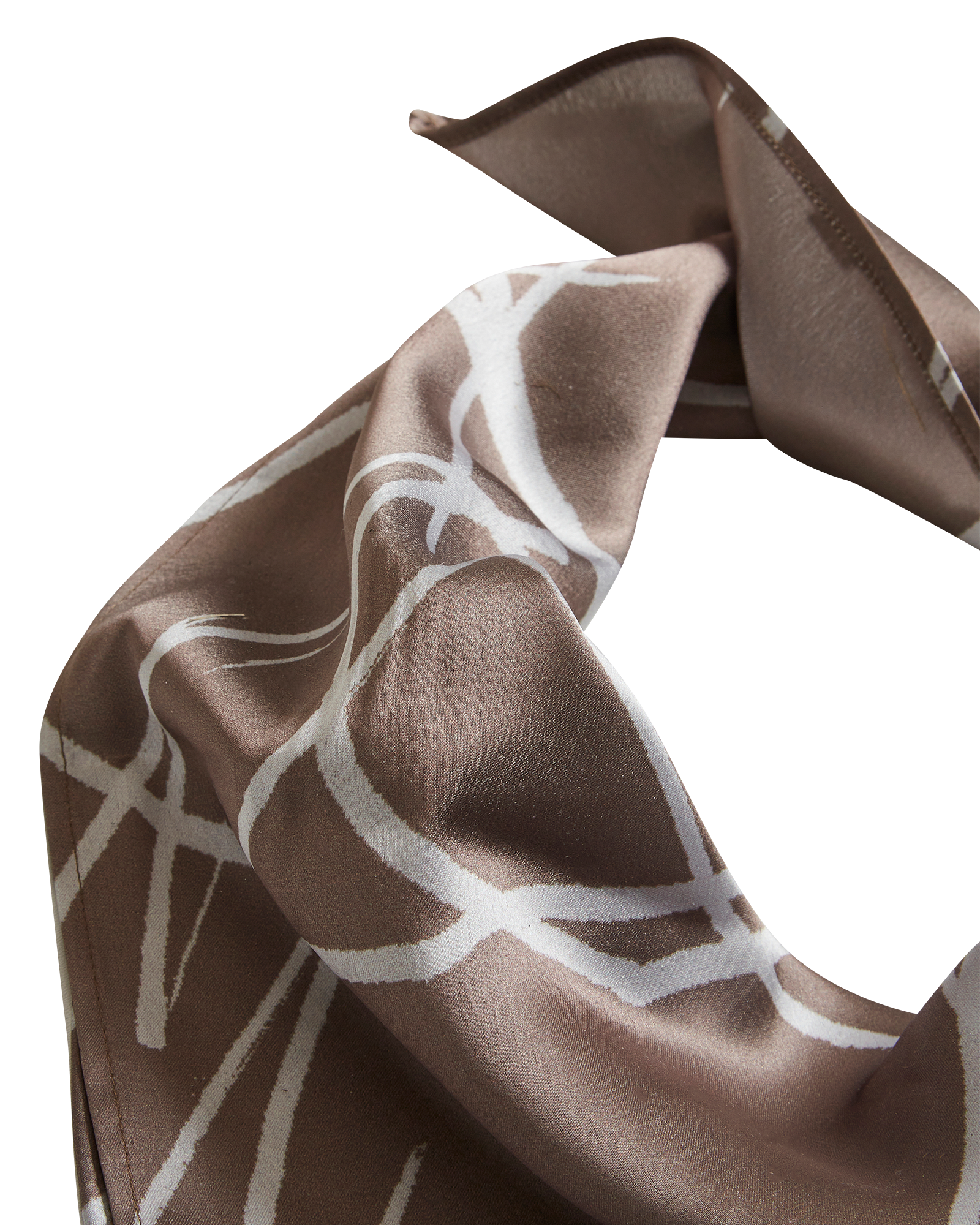 Noelle halstørklæde er designet af den danske model og influencer Cecilie Haugaard. Tørklædet er en firkantet model i den smukkeste lysebrune med et hvidt mønster. Det er perfekt at style i halsen som en ekstra detalje til dit outfit.