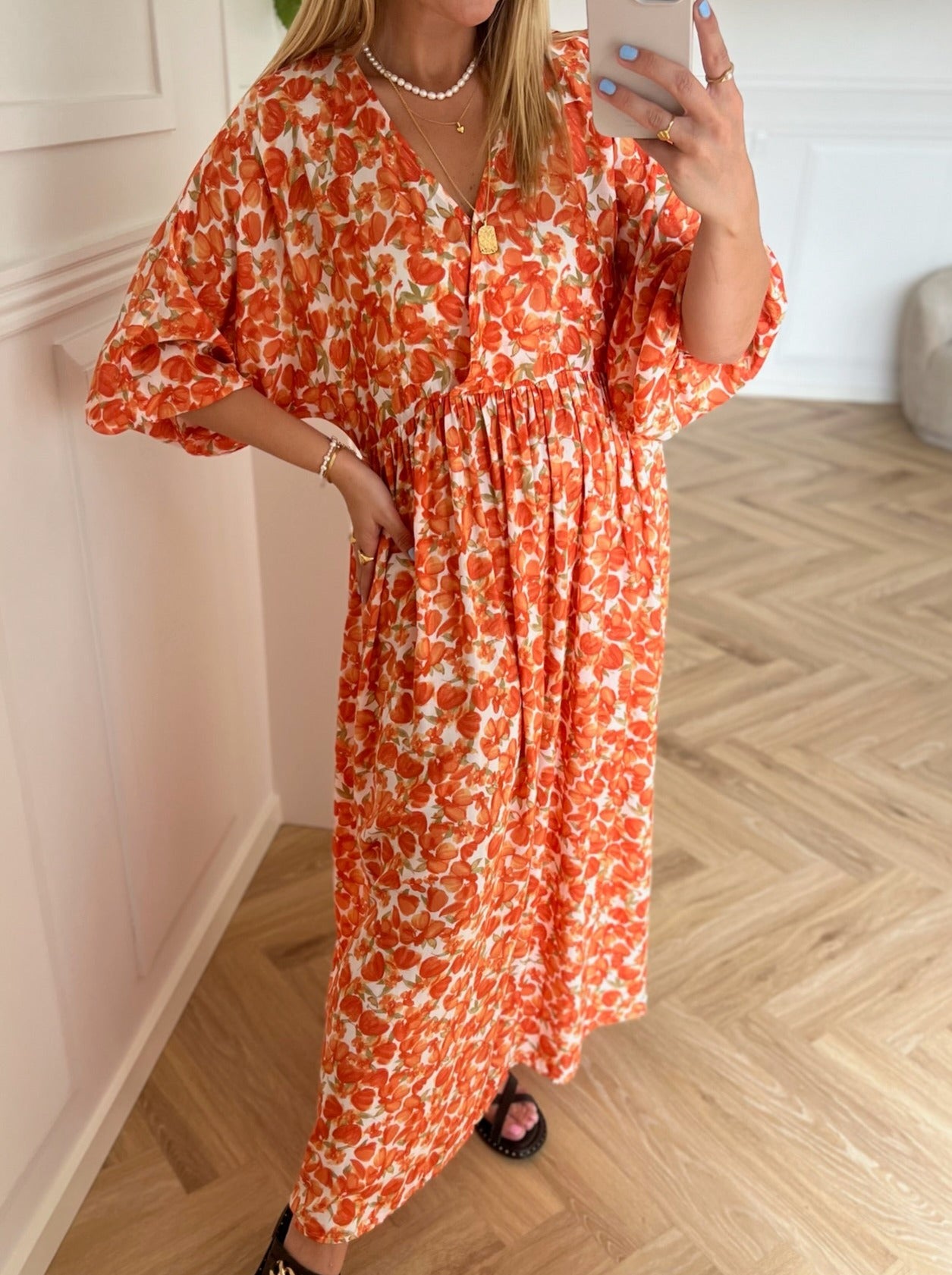 Pietra 3/4 Kjole Tigerlily Flower fra MSCH Copenhagen
