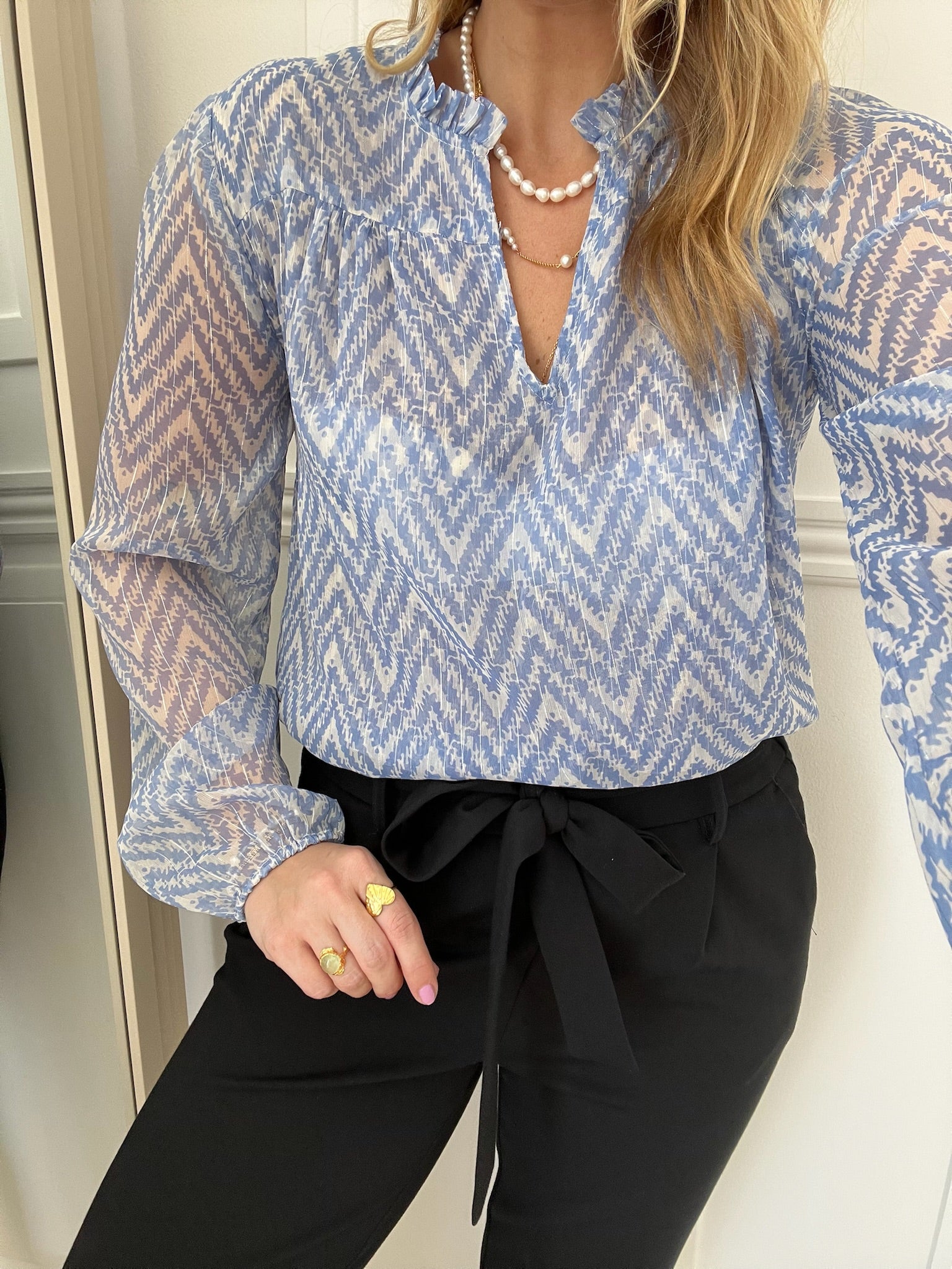 Neo Noir Bisa Big Tile Bluse Light Blue