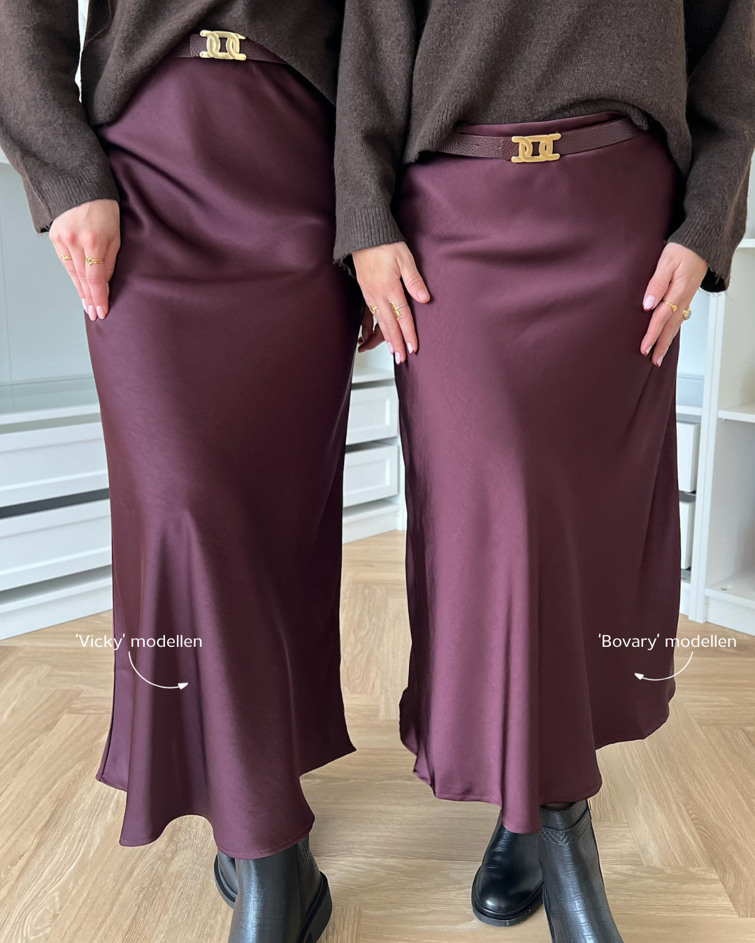 Meget smuk lang nederdel fra Neo Noir i en lækker bordeaux-rød farve. Nederdelen har elastik indvendigt i taljen og den er fremstillet i en lækker blød satinkvalitet, der falder smukt.