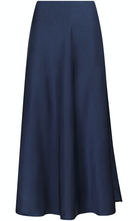 Den meget populære Bovary nederdel er nu landet i en smuk blå udgave. Nederdelen har elastik indvendigt i taljen og den er fremstillet i en blød satinkvalitet, der falder smukt.