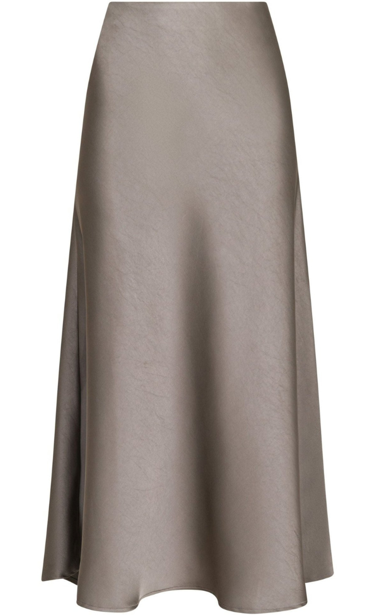 Den meget populære Bovary nederdel er nu landet i en smuk varm grå udgave. Nederdelen har elastik indvendigt i taljen og den er fremstillet i en lækker blød satinkvalitet, som falder smukt.