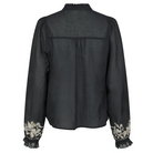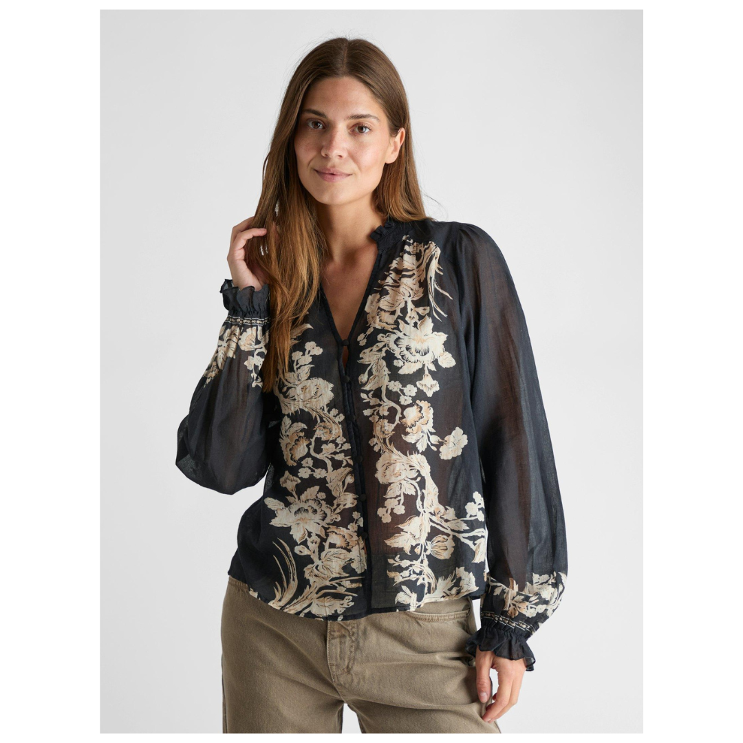 Langærmet bluse i bomulds voile med print. Blusen er åben i halsen foran.