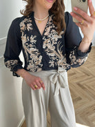 Brise Printed Voile Bluse Navy fra Neo Noir