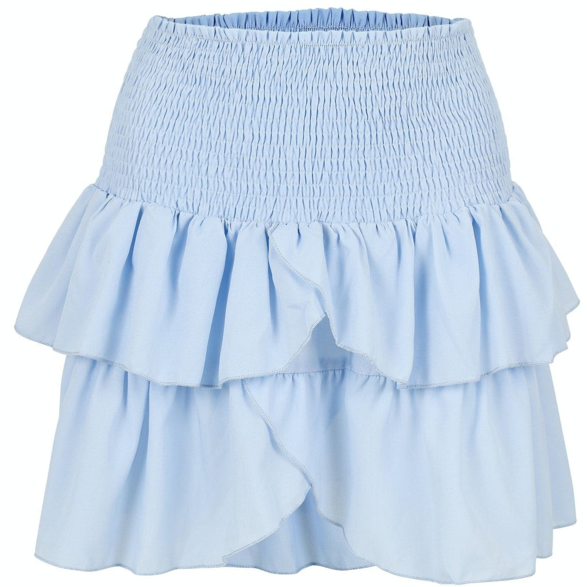 Sød, kort nederdel med to lag flæser samt slids foran. Nederdelen har smock samt elastik i taljen og pasformen er smuk og komfortabel.