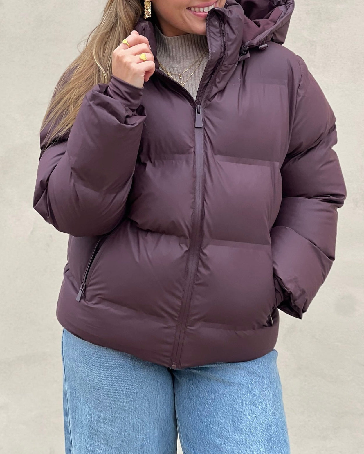 Lækker, vatteret jakke som er vandafvisende. Jakkens kvalitet er blød og mat og den har et cool look. Det er en kort model med aftagelig hætte og justerbar vidde forneden. Super lækker til kølige efterårs- og vinterdage.