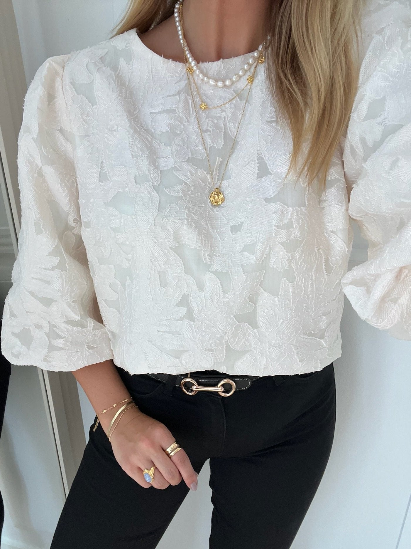 Lorraine Brocade Bluse Ivory fra Neo Noir