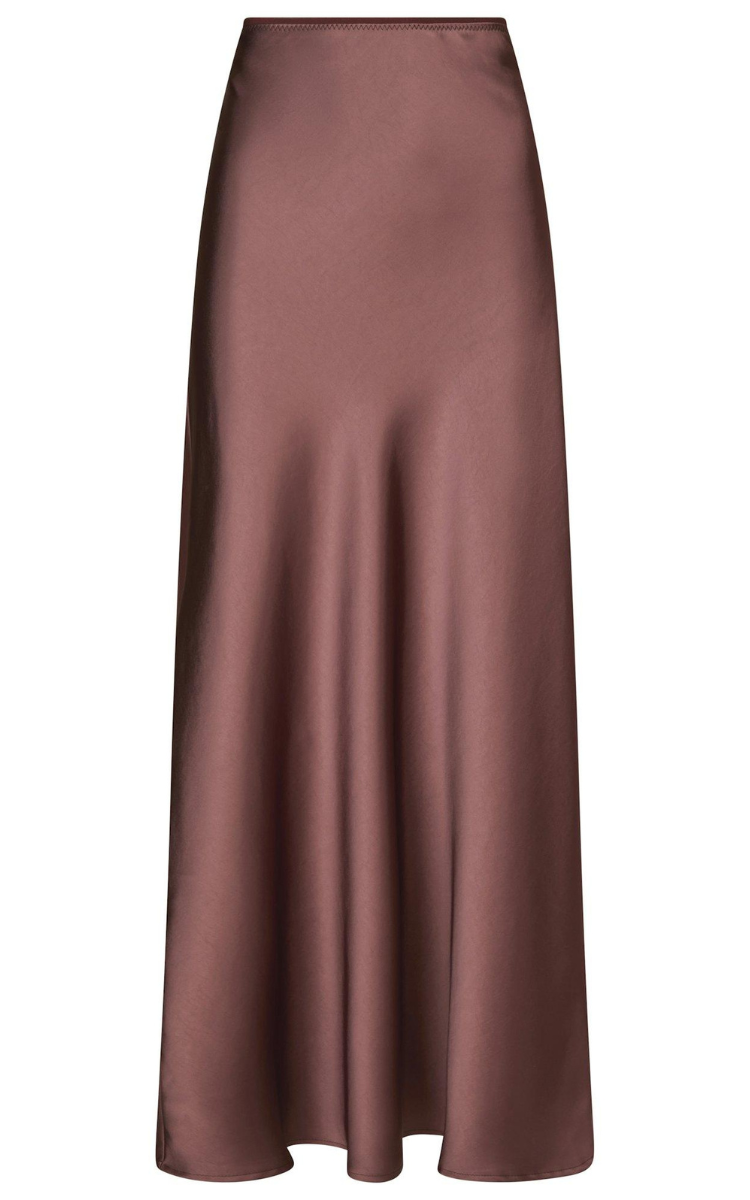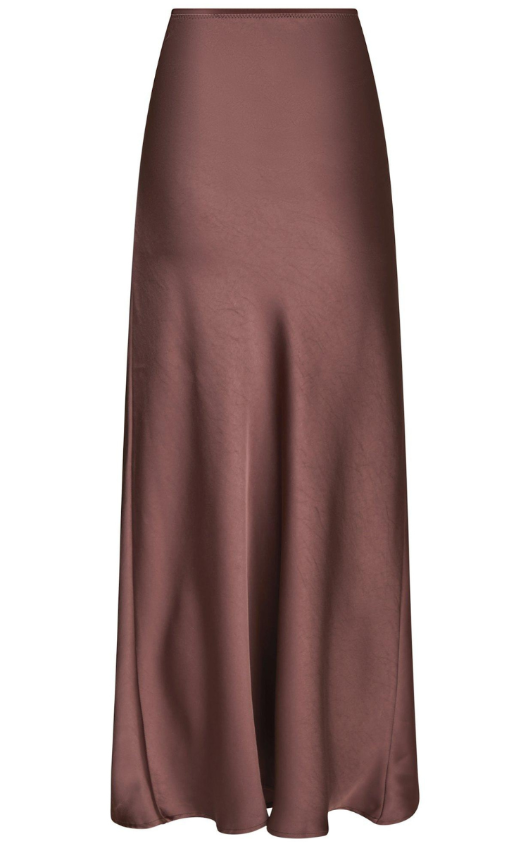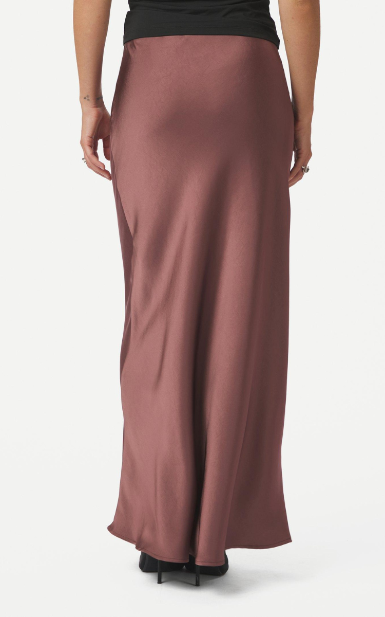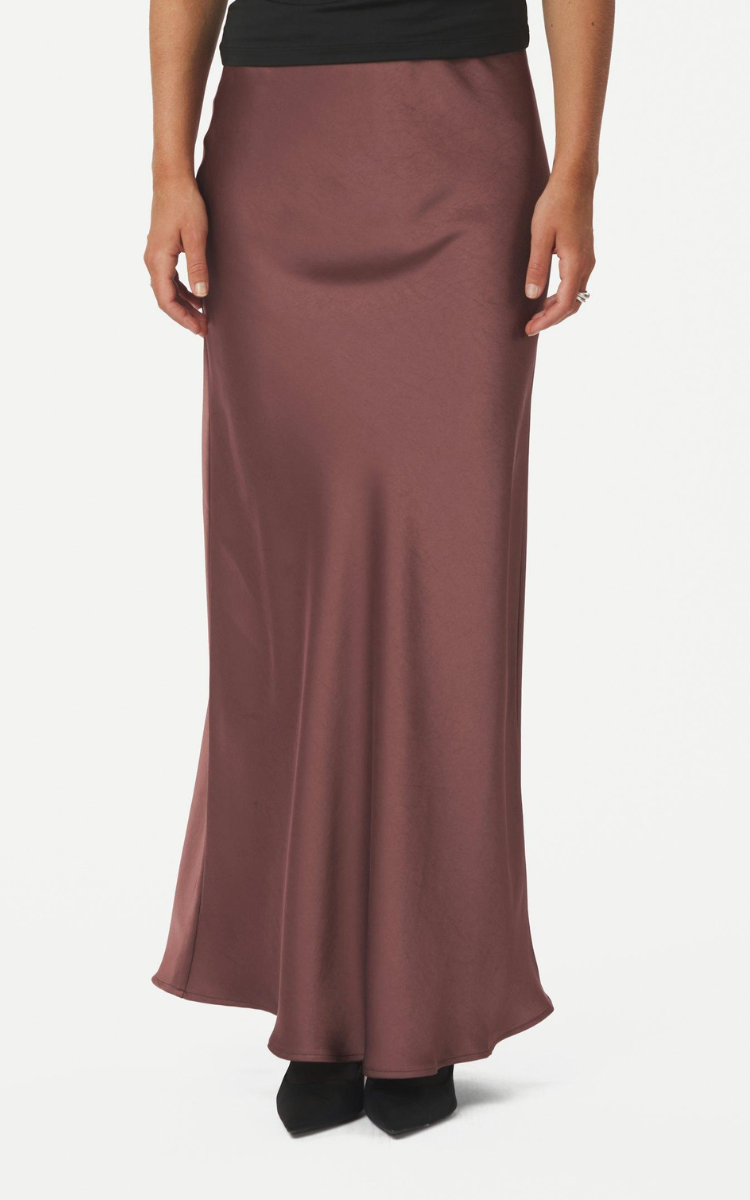 Meget smuk, lang nederdel fra Neo Noir i en mørk rosa. Nederdelen har elastik indvendigt i taljen og den er fremstillet i en lækker og kraftig satinkvalitet, der falder utroligt smukt.