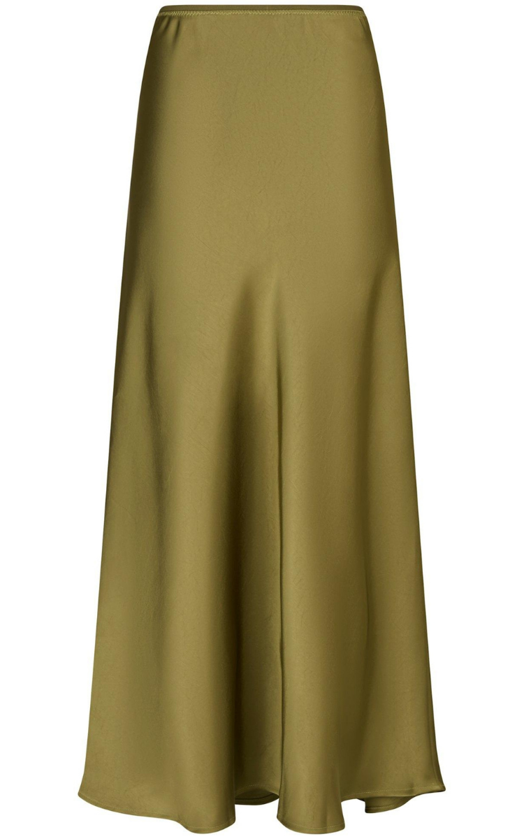 Meget smuk, lang nederdel fra Neo Noir i en grøn farve. Nederdelen har elastik indvendigt i taljen og den er fremstillet i en lækker og kraftig satinkvalitet, der falder utroligt smukt.