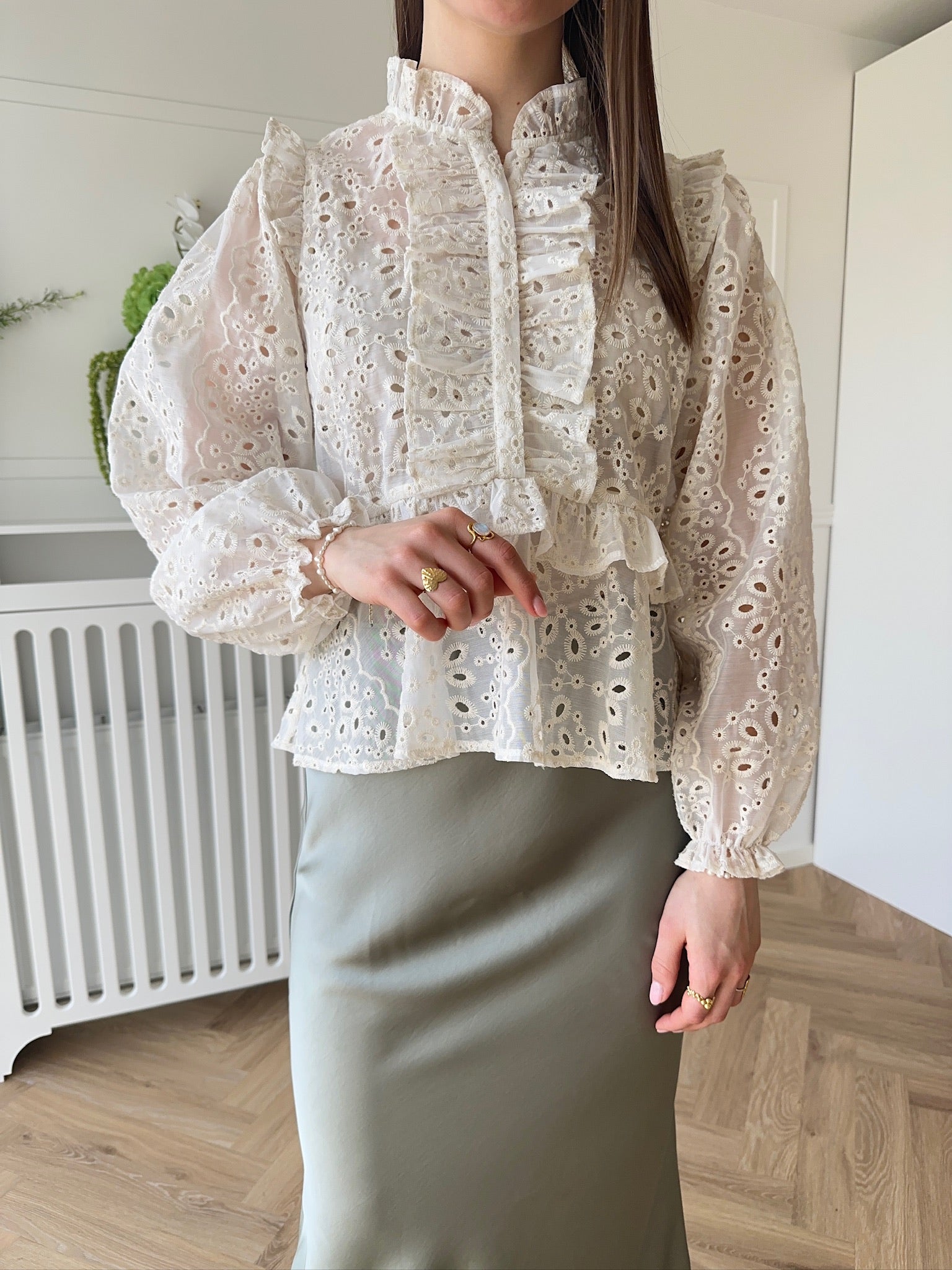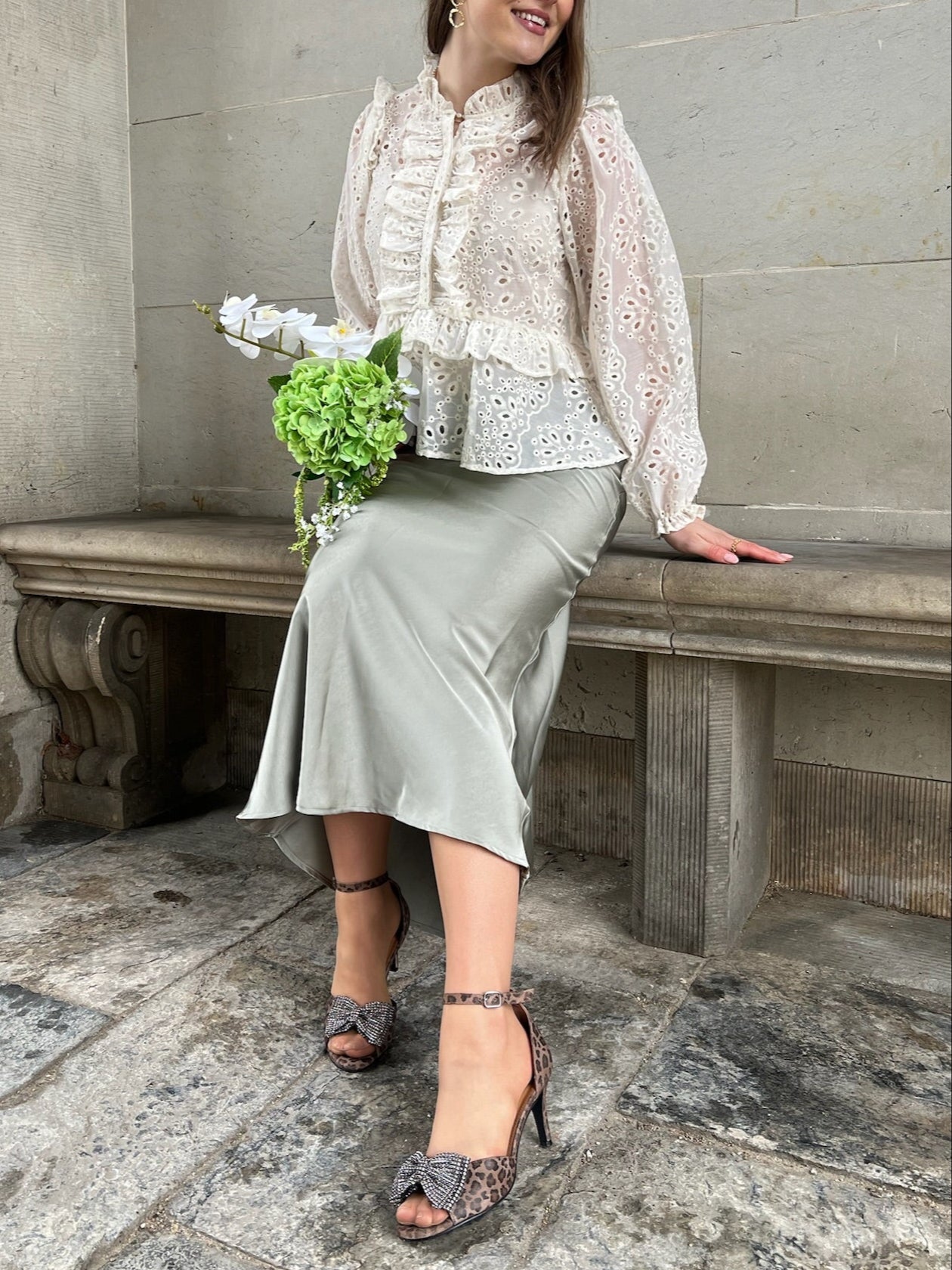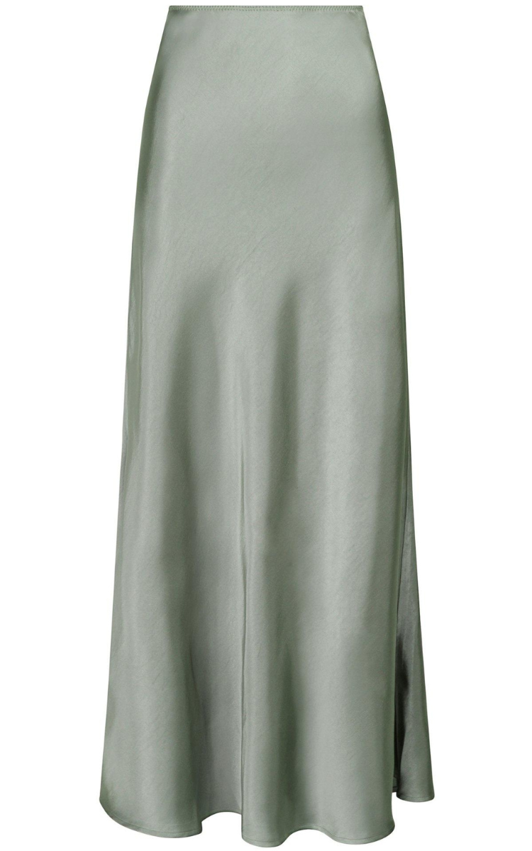 Meget smuk, lang nederdel fra Neo Noir i en støvet grøn. Nederdelen har elastik indvendigt i taljen og den er fremstillet i en lækker og kraftig satinkvalitet, der falder utroligt smukt.