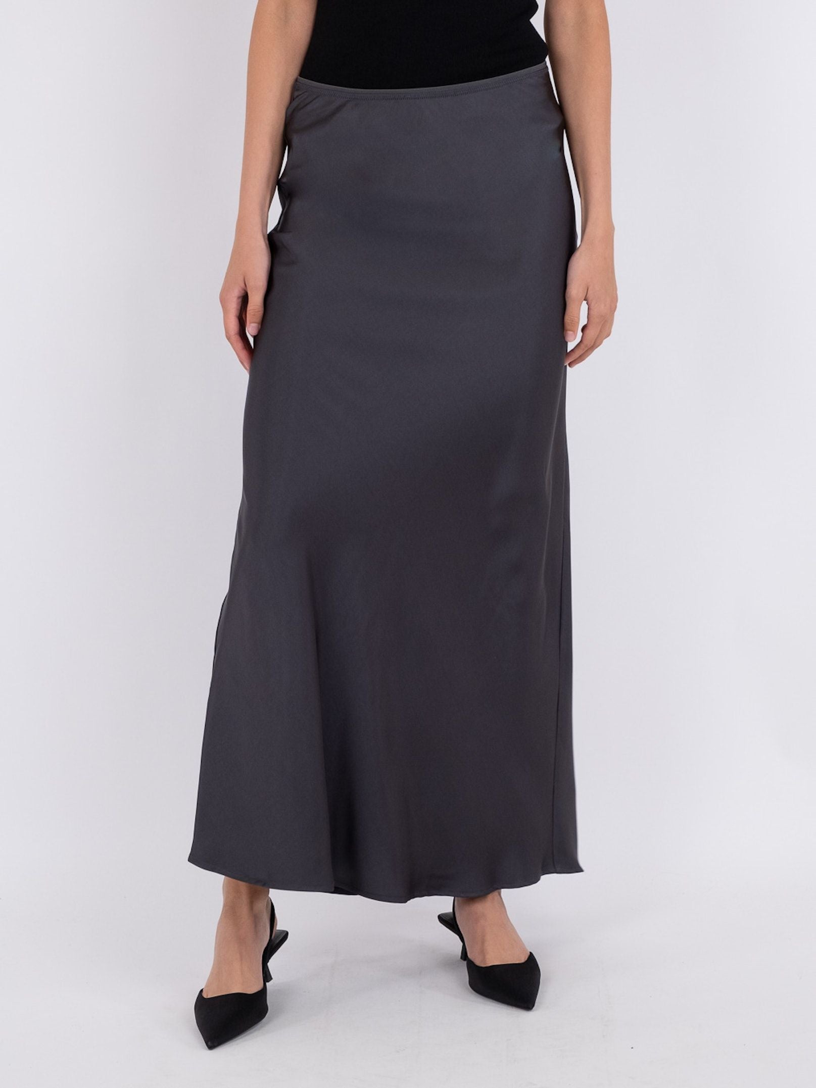 Meget smuk, lang nederdel fra Neo Noir i en smuk mørkegrå. Nederdelen har elastik indvendigt i taljen og den er fremstillet i en lækker og kraftig satinkvalitet, der falder utroligt smukt.