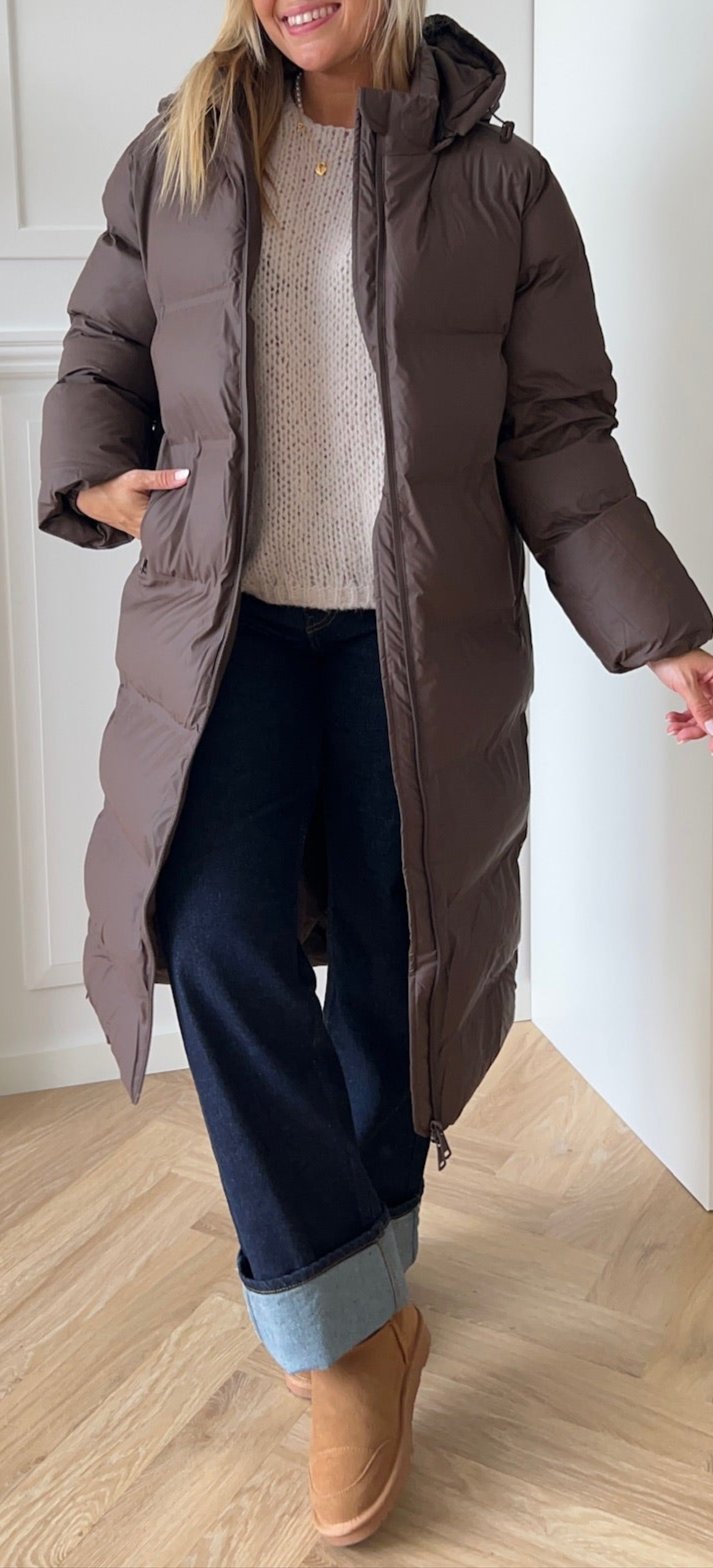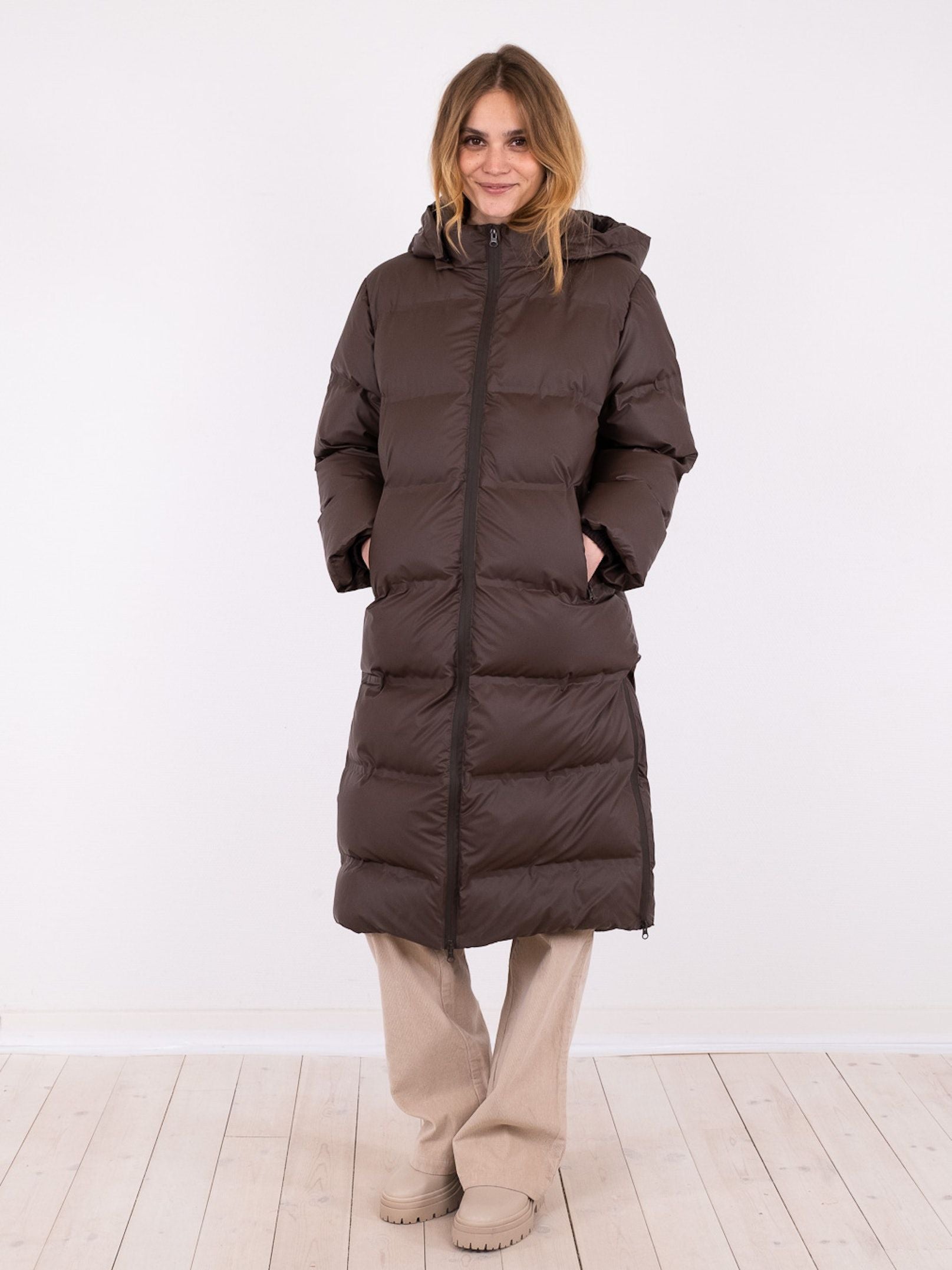Lækker, vatteret jakke som er vandafvisende. Jakkens kvalitet er blød og mat, hvilket giver et cool look. Det er en lang model med aftagelig hætte og lynlås i siderne. En super lækker lang jakke til kølige efterårs- og vinterdage.
