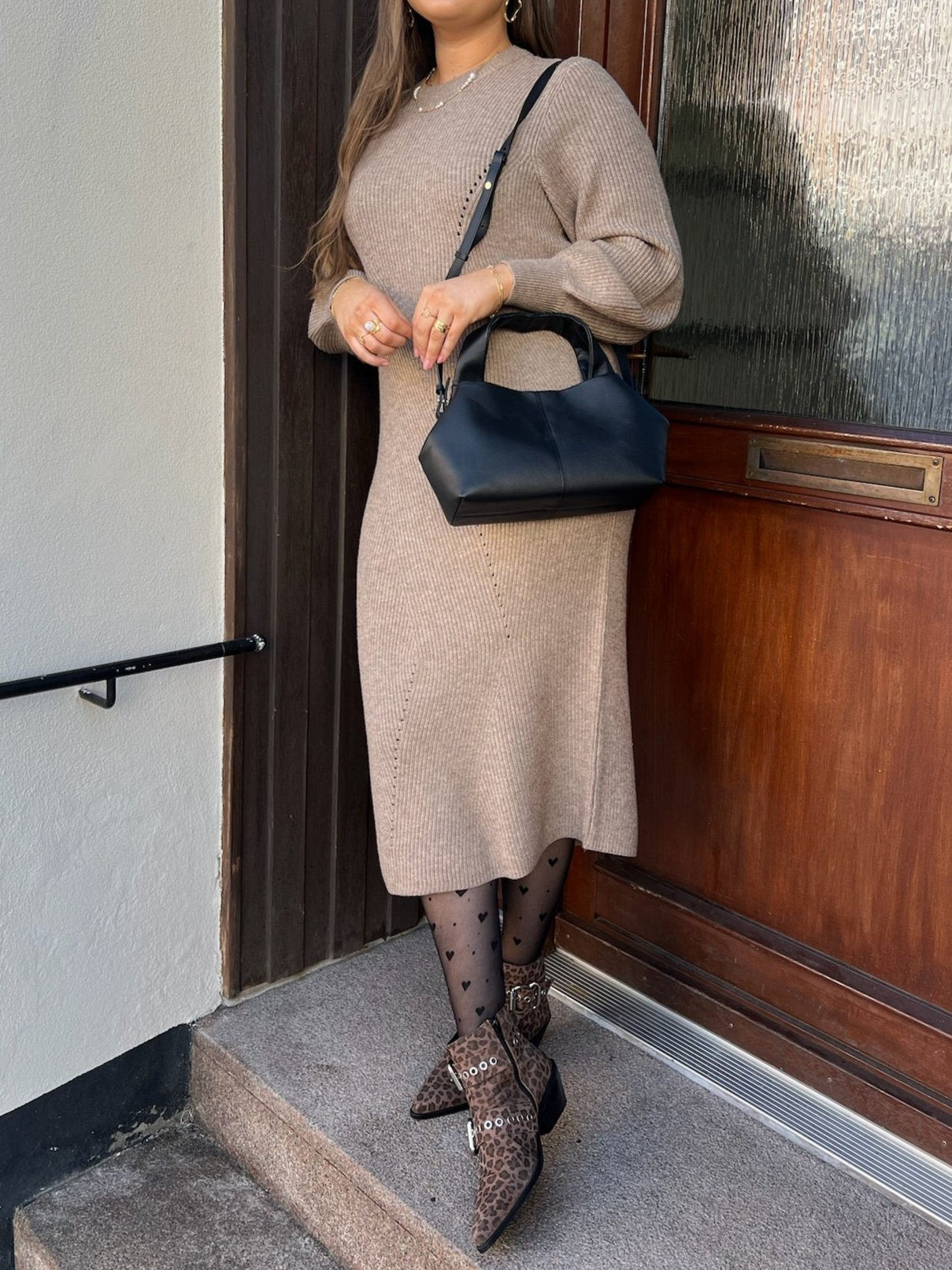 Ditte LS Knit Midi Kjole Desert Taupe/Melange fra Object