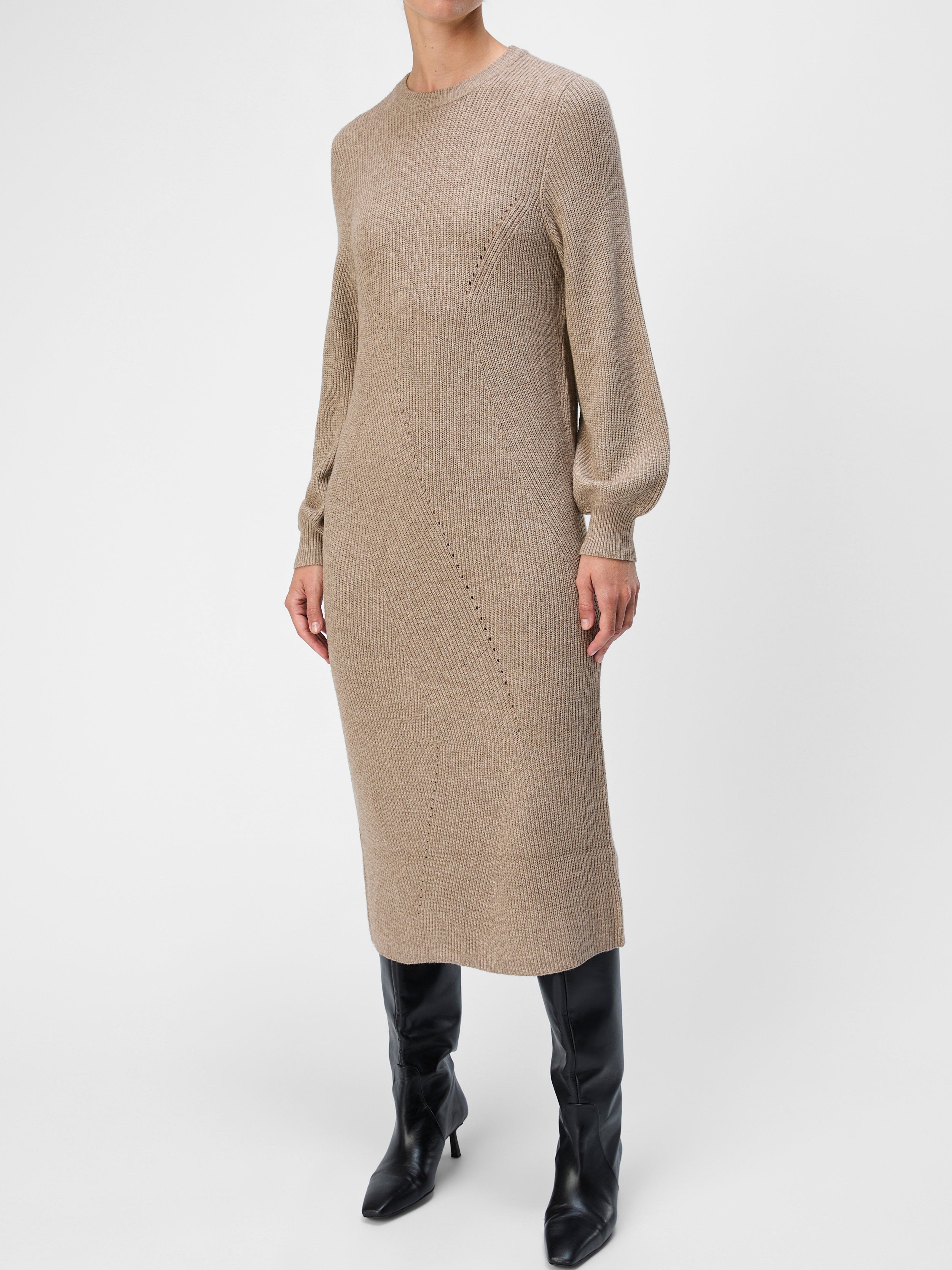 Object Ditte LS Knit Midi Kjole Desert Taupe/Melange NOA24