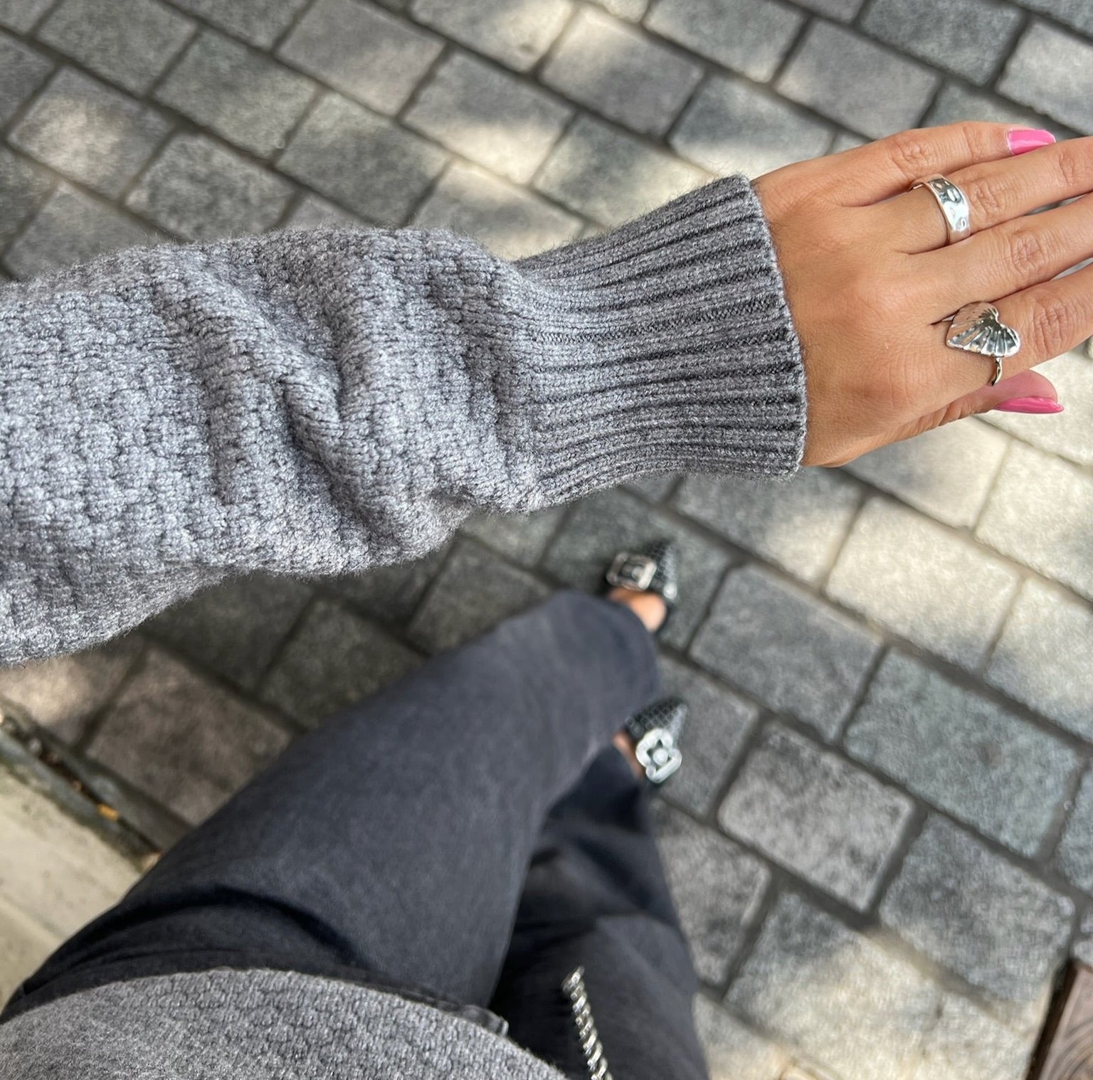 Object Fenya LS Knit Pullover Medium Grey Melange