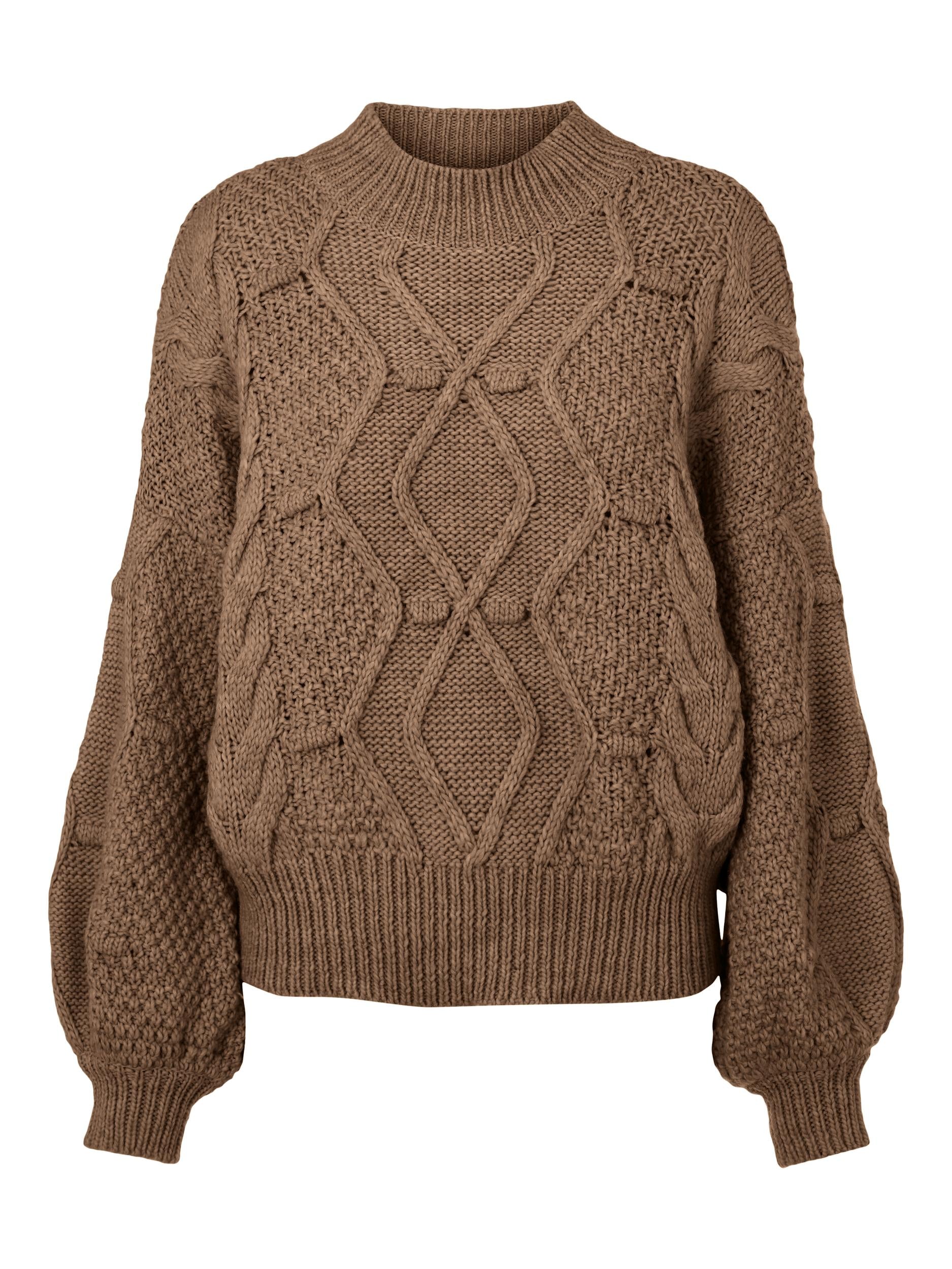 Denne lækre kabelstrik fra Object er et must i klædeskabet til kølige dage! Den har en bred pasform, rund hals og lange ærmer. Den brune farve er super smuk til efterårssæsonen og giver varme på kølige dage.