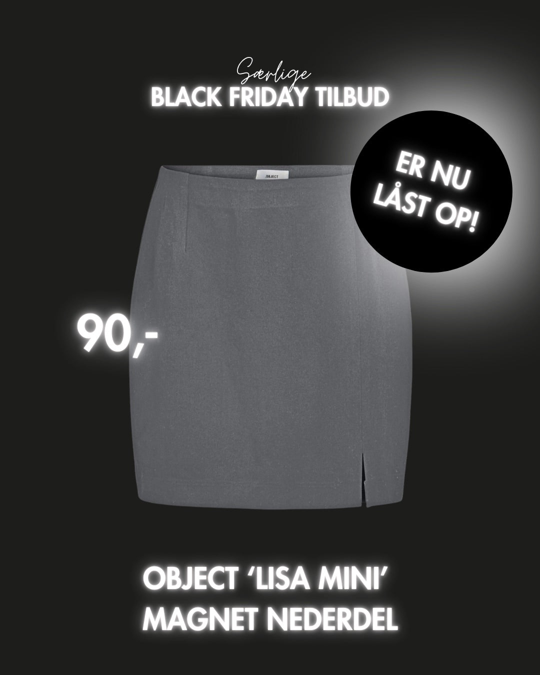 Sød mini nederdel, der bare passer til alt! Lisa nederdelen har elastik i taljen, en skjult lynlås bagpå og en sød lille slids i den ene side, som giver en flot effekt til benet. Modellen et lavet i et lækkert materiale, der har god elastik i sig, hvilket gør den yderst behagelig at have på.
