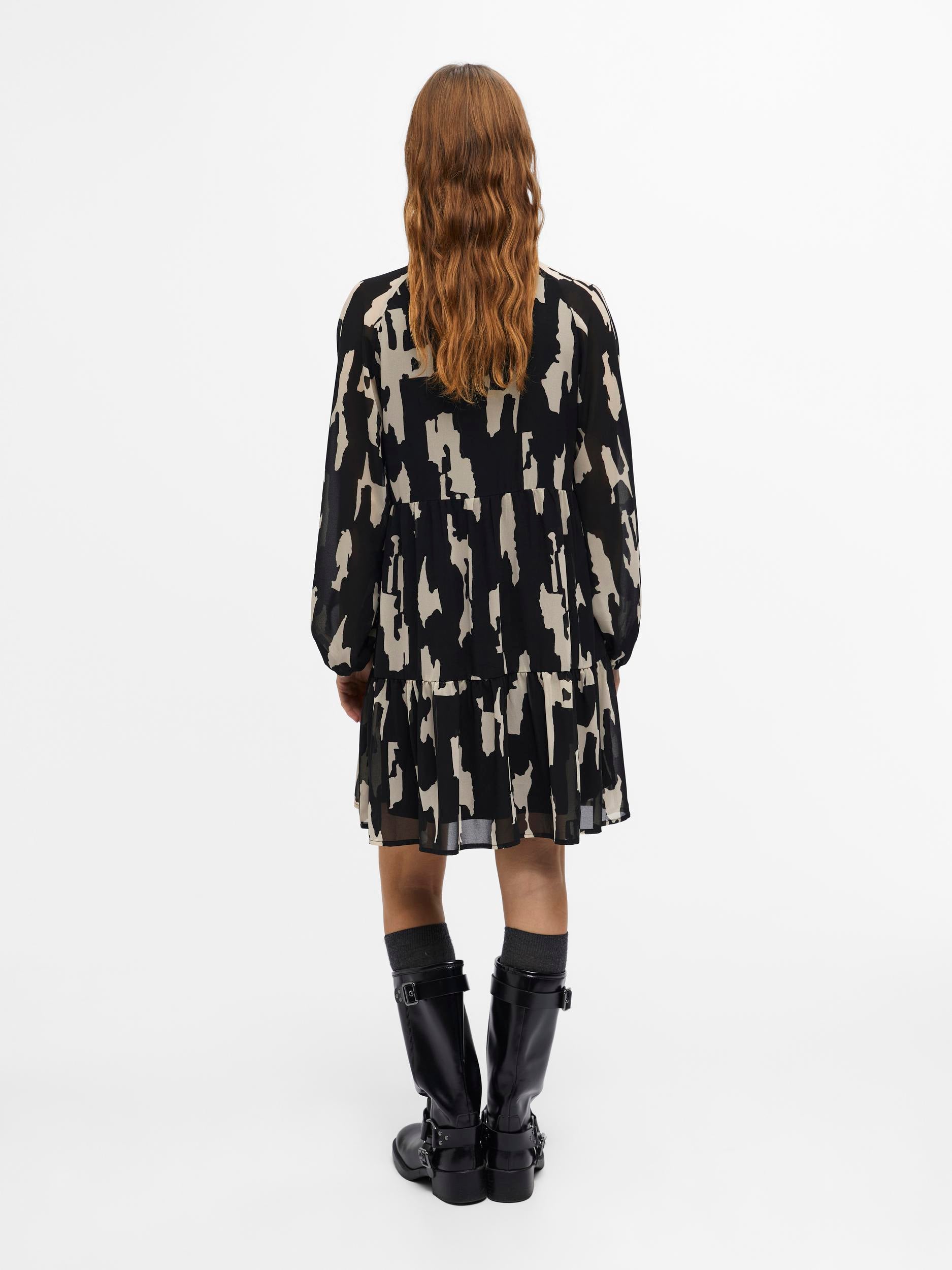 Sød, printet kjole fra Object med lange ærmer, v-hals og løs pasform. Kjolen har læg hele vejen ned og et flot print, der kan styles hele året rundt.