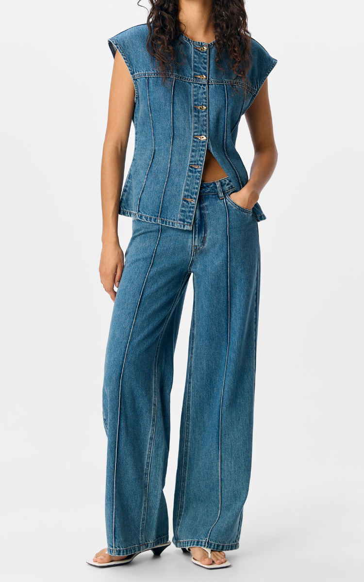 Moji Divona MW Wide Jeans Medium Blue Denim fra Object
